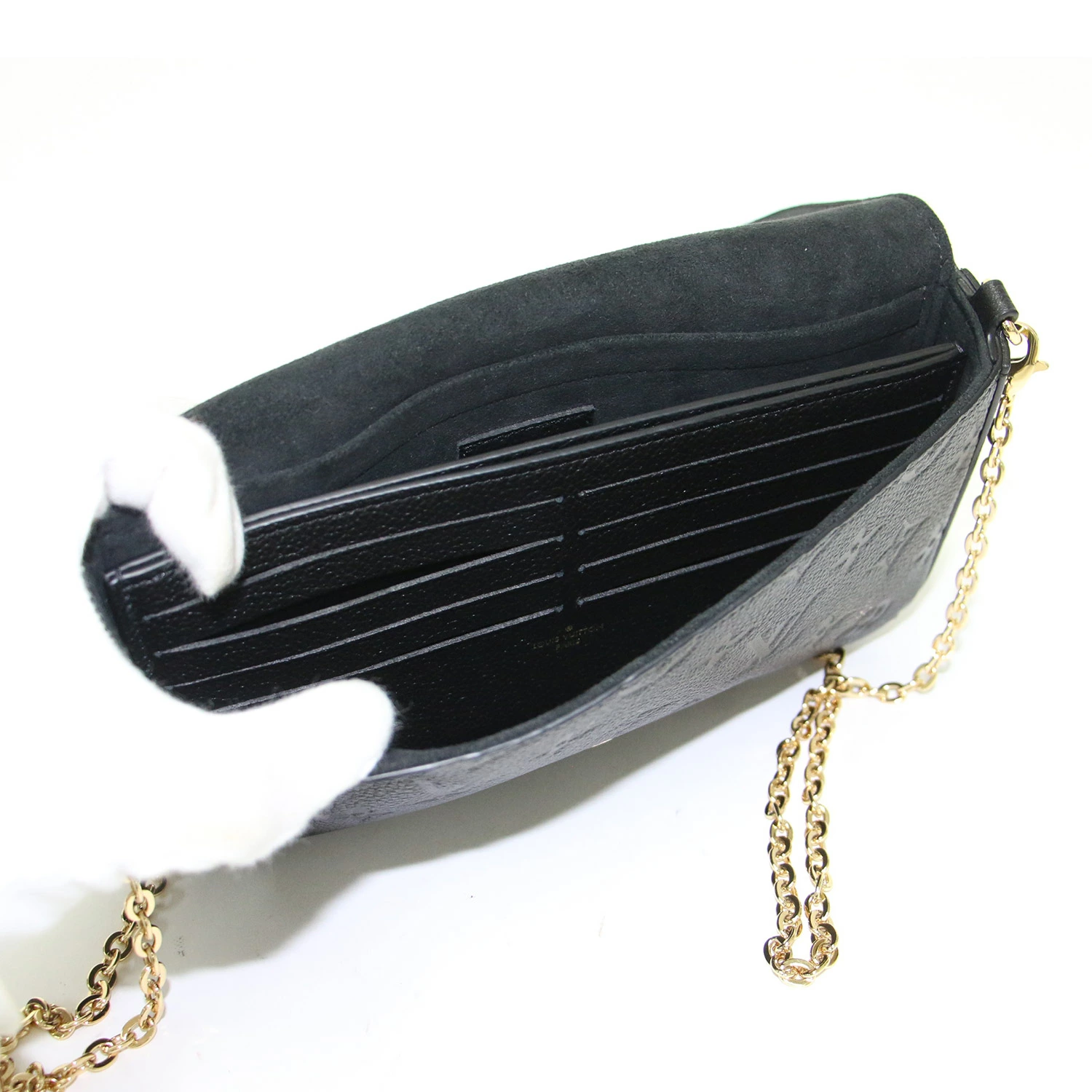 LOUIS VUITTON | Monogram Empreinte Pochette Felicie / Shoulder Bag | Chain Shoulder/Crossbody Bag, Embossed Cowhide Leather | Black | Made in Italy, Brand Name Bag [Women's] [Pre-owned] [K4648]