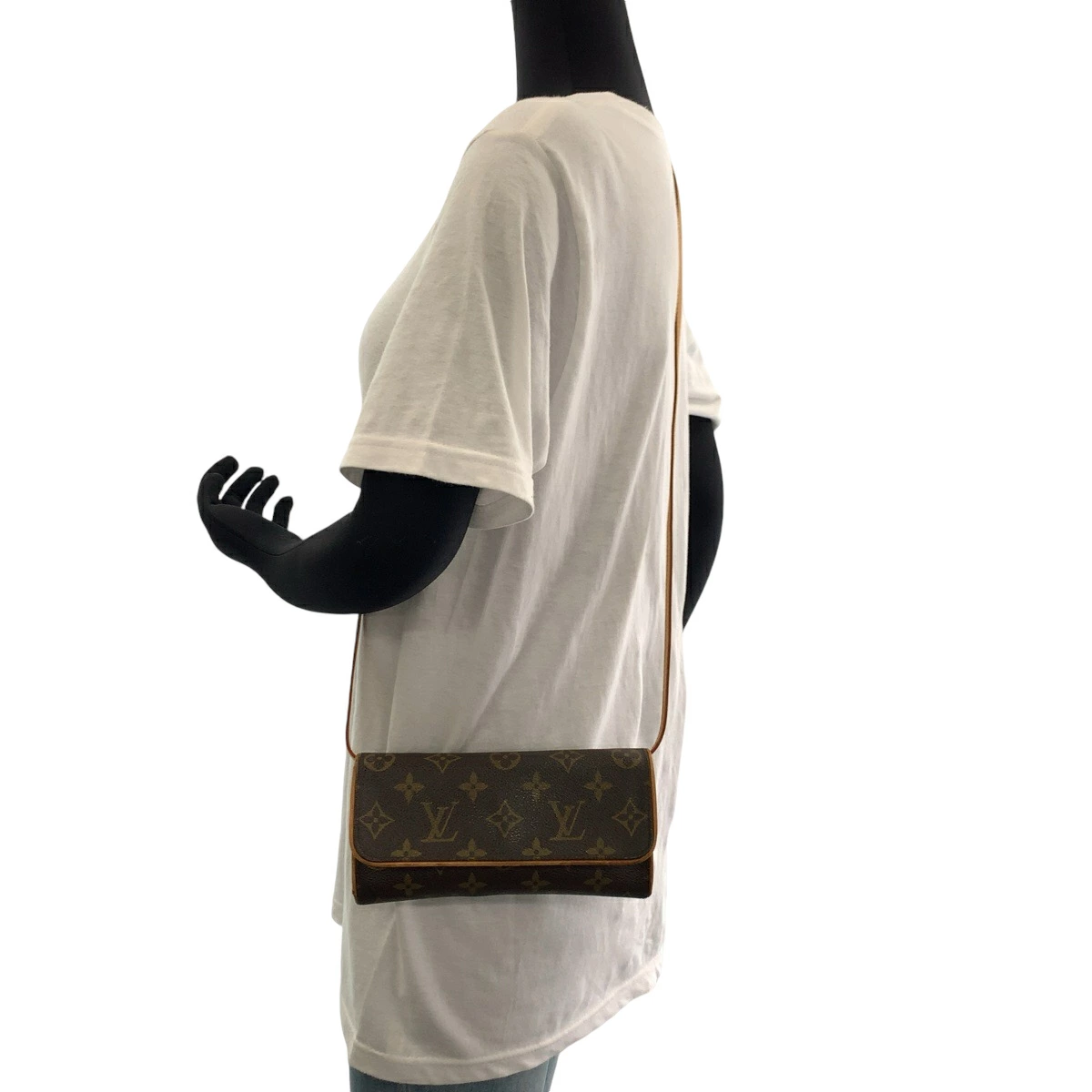 Pre-owned Louis Vuitton Monogram Pochette Twin PM Shoulder Bag, Brown Gold Hardware, PVC, M51854, Women's, 503440