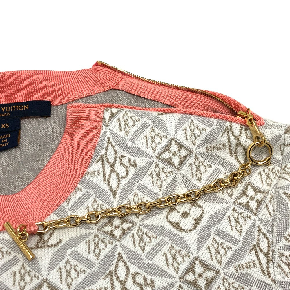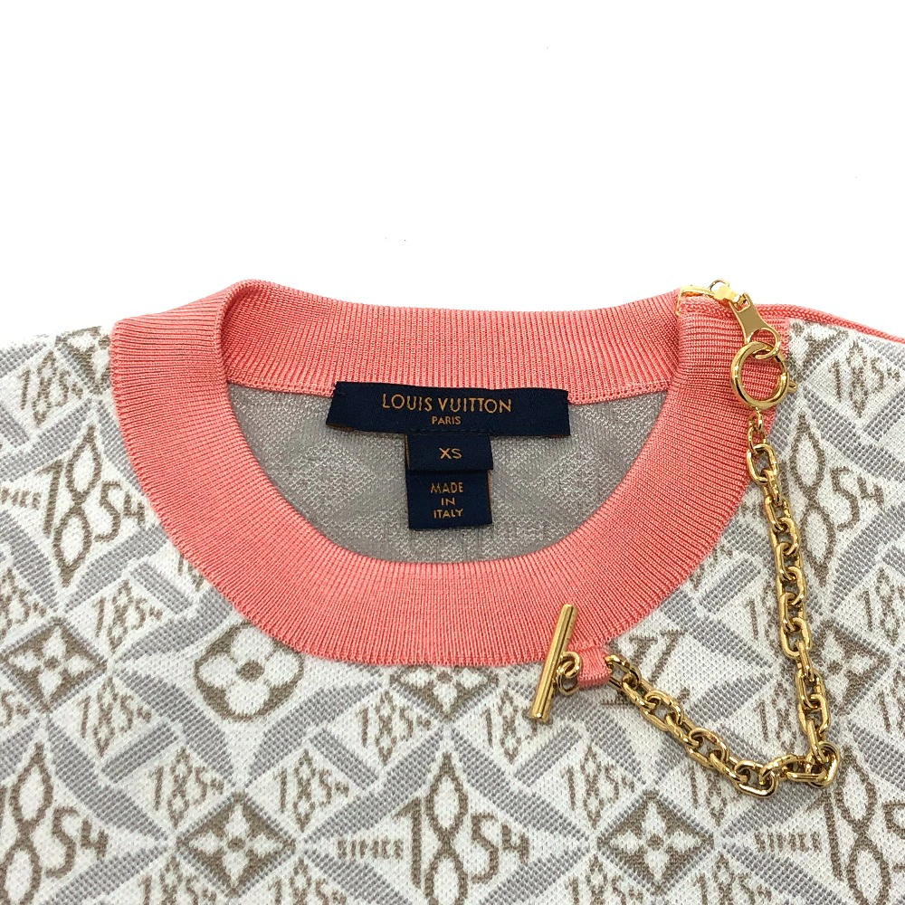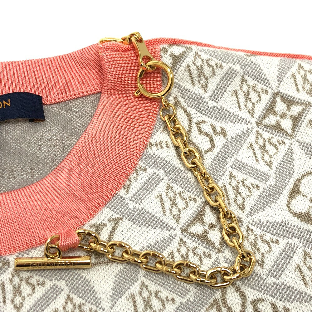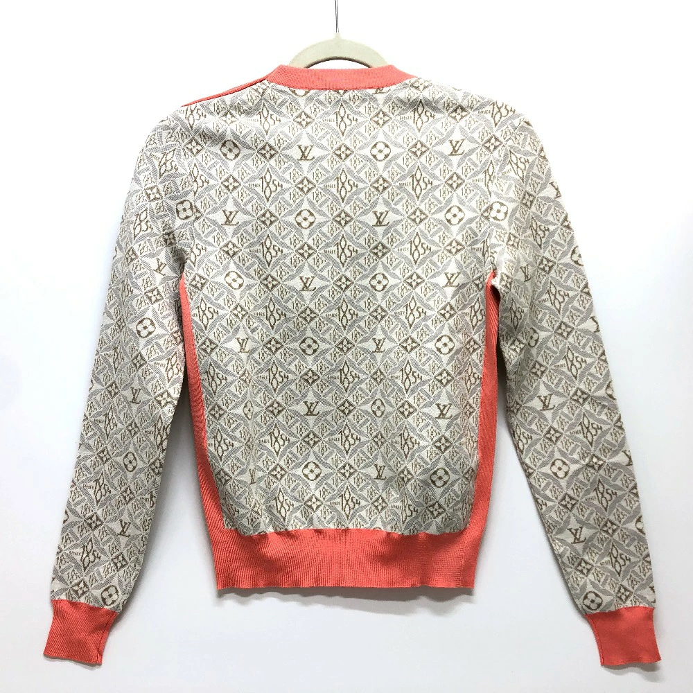 Pre-owned Louis Vuitton Monogram SUNCE1854 contrast trim pullover knit in silk and cotton, gray and pink.