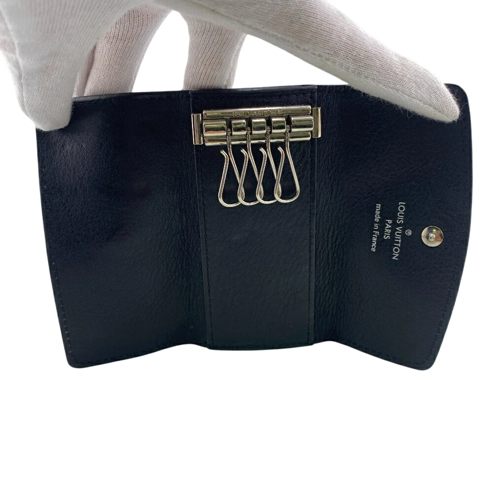 LOUIS VUITTON M64054 Multicle 4 Perforated Monogram Mahina 4-Ring Key Case, Black, Women's