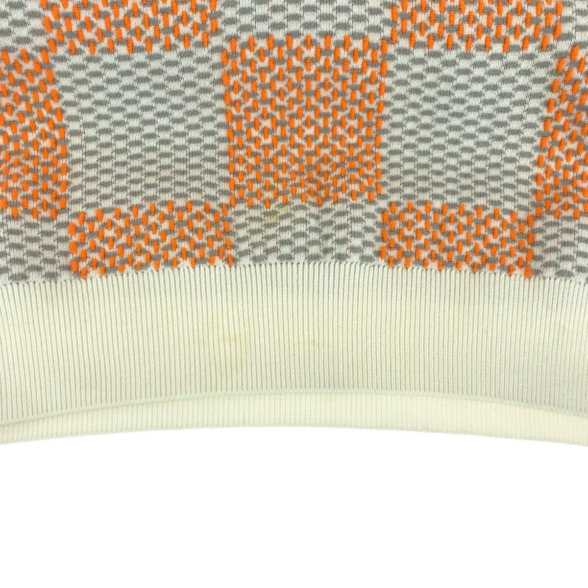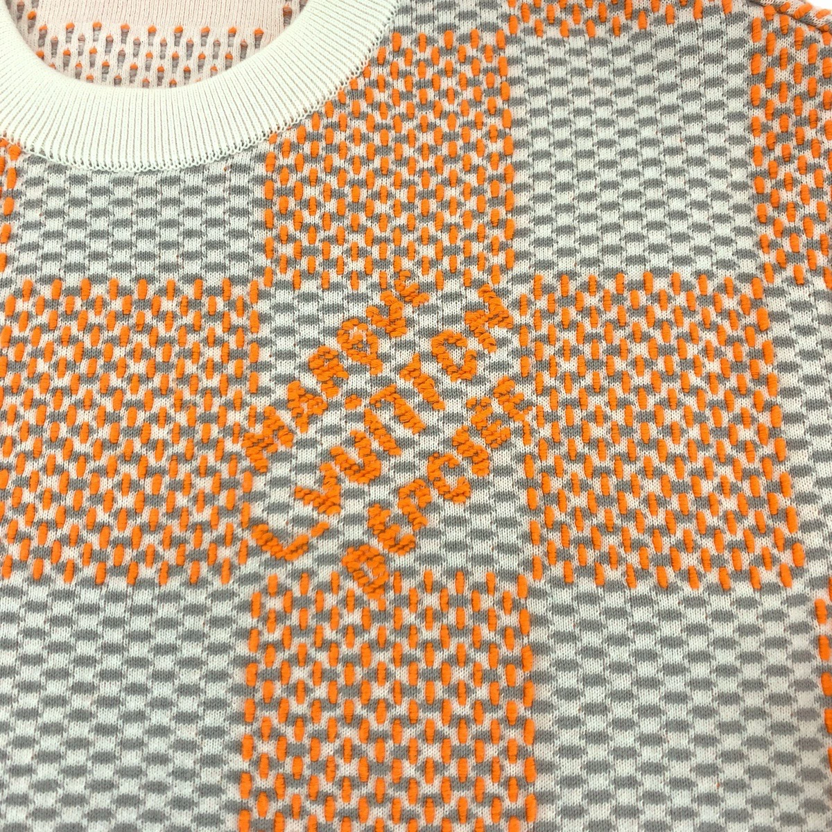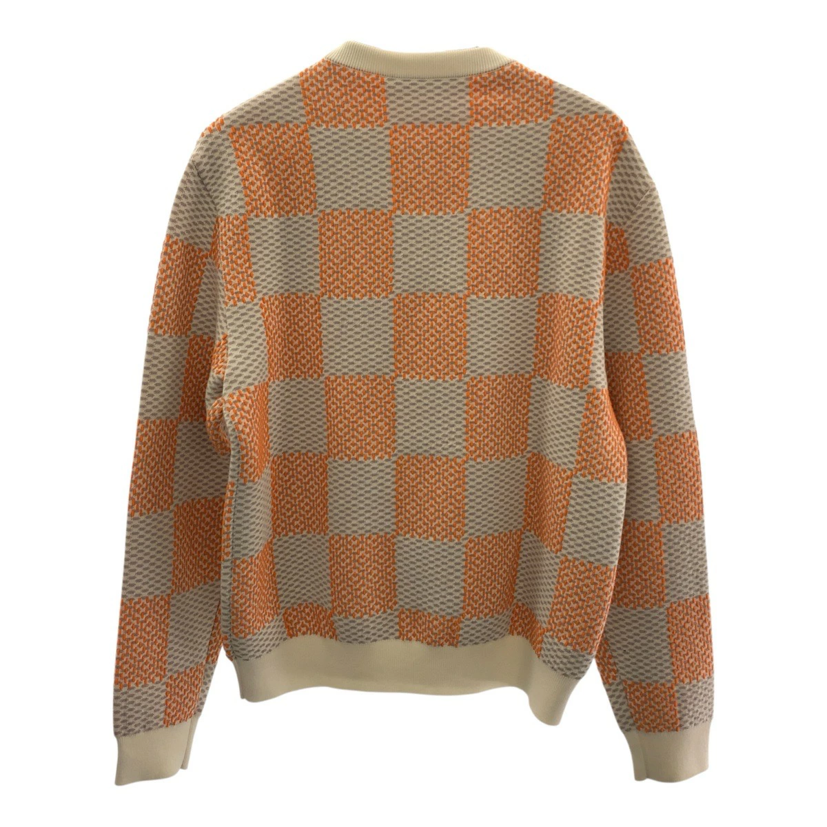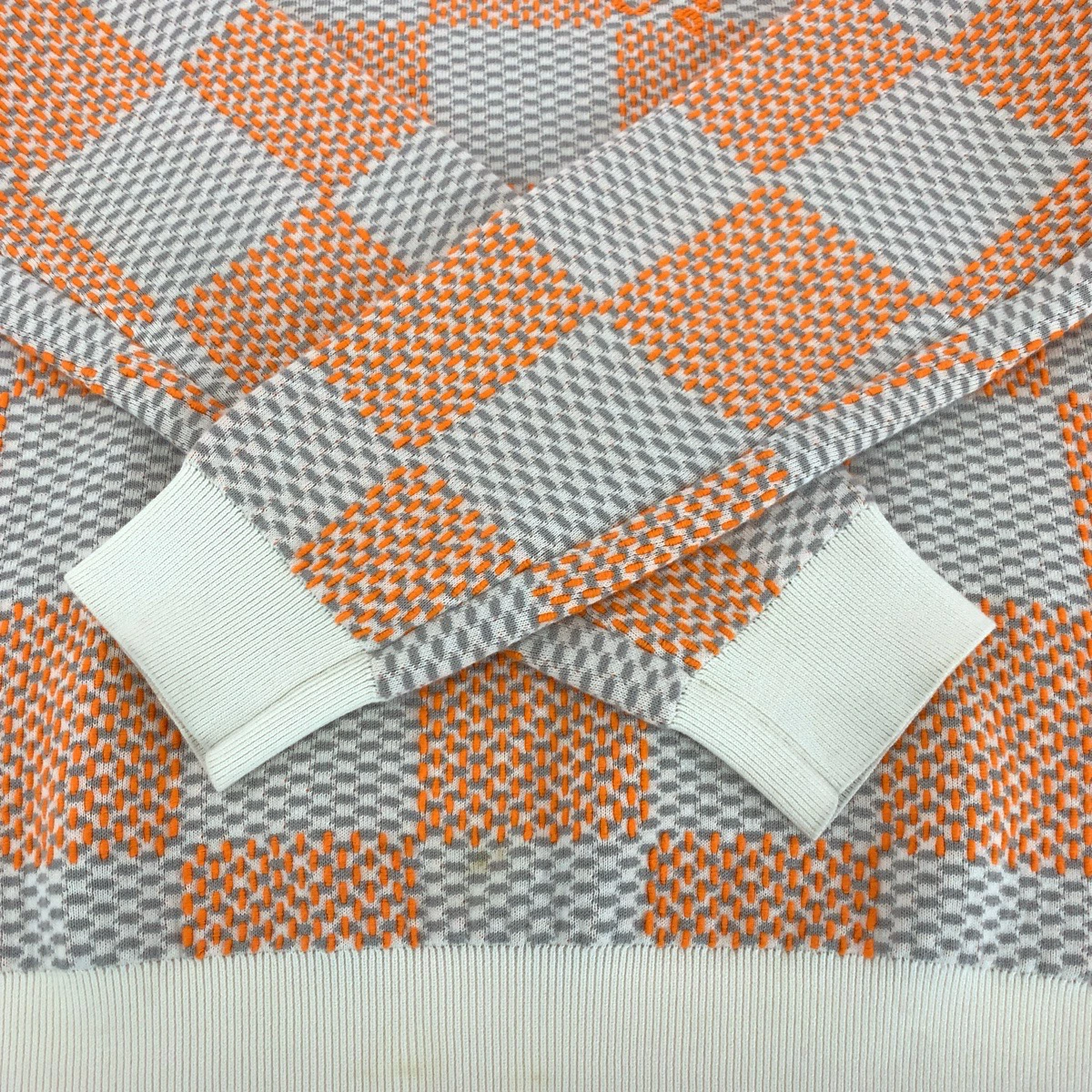 Pre-owned Louis Vuitton 2024 Spring/Summer Damier Jacquard Cotton Pullover, Size M, Orange, Gray, Ivory, Cotton Knit Sweater, Men's, 504590