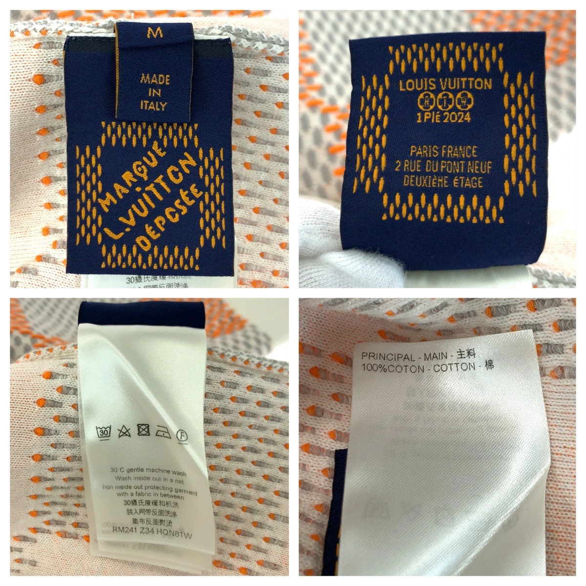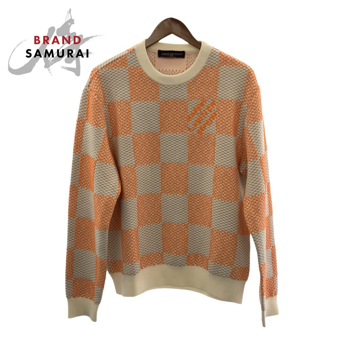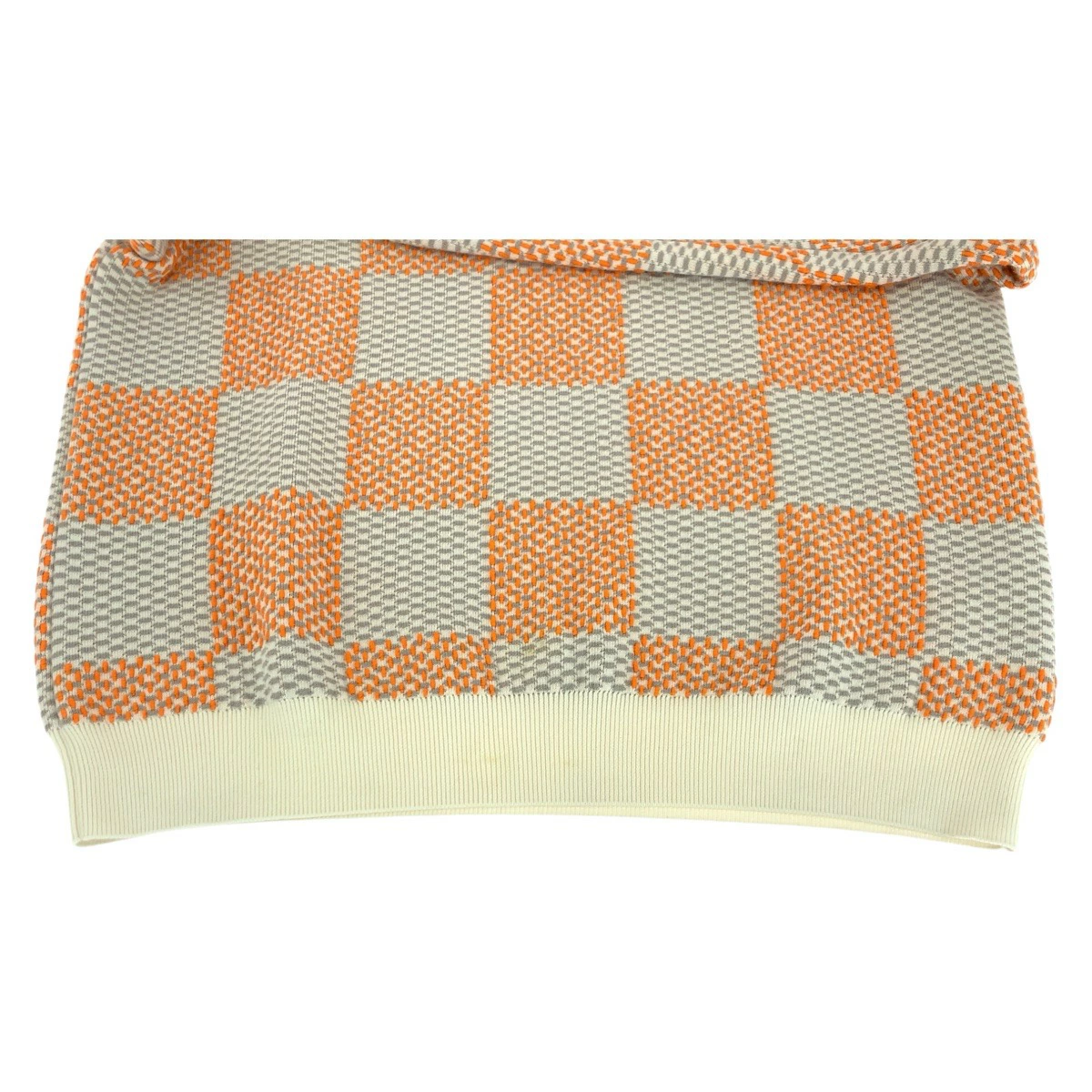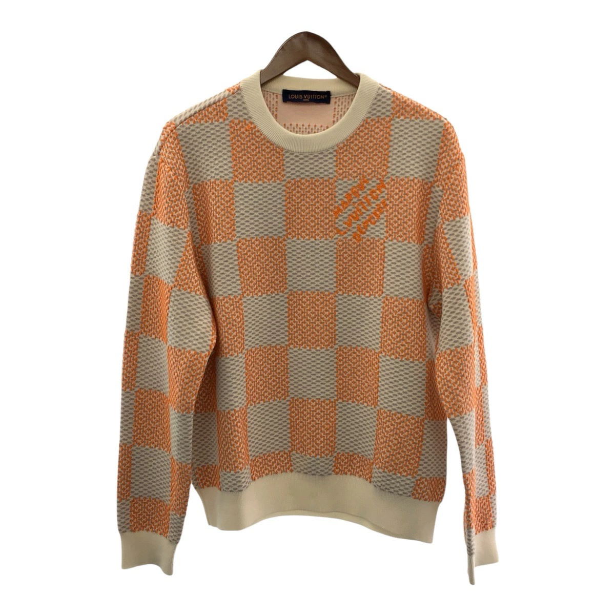 Pre-owned Louis Vuitton 2024 Spring/Summer Damier Jacquard Cotton Pullover, Size M, Orange, Gray, Ivory, Cotton Knit Sweater, Men's, 504590