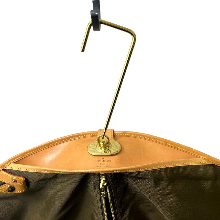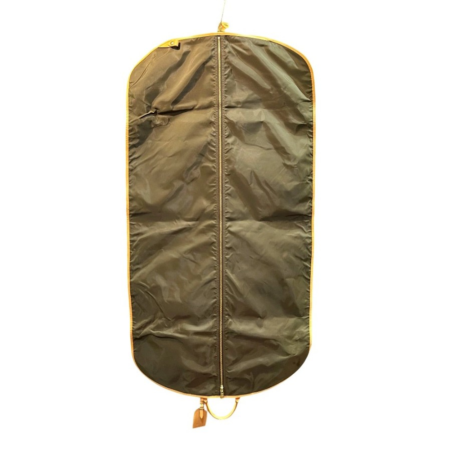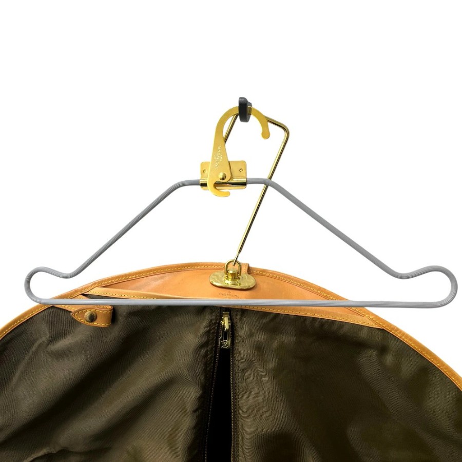 | 商品説明 | センターファスナー開閉式で、内側にハンガーを固定するフックがあります。レザー製のハンドルが付いており、二つ折りにした状態でバッグのように持ち運べます。 |