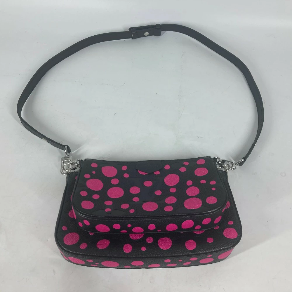 | 商品説明 | ブラックのモノグラム・アンプラント レザーに、フューシャカラーの「ドット」のモチーフを散りばめた、多用途にお楽しみいただけるミュルティポシェットアクセソワールです。 |