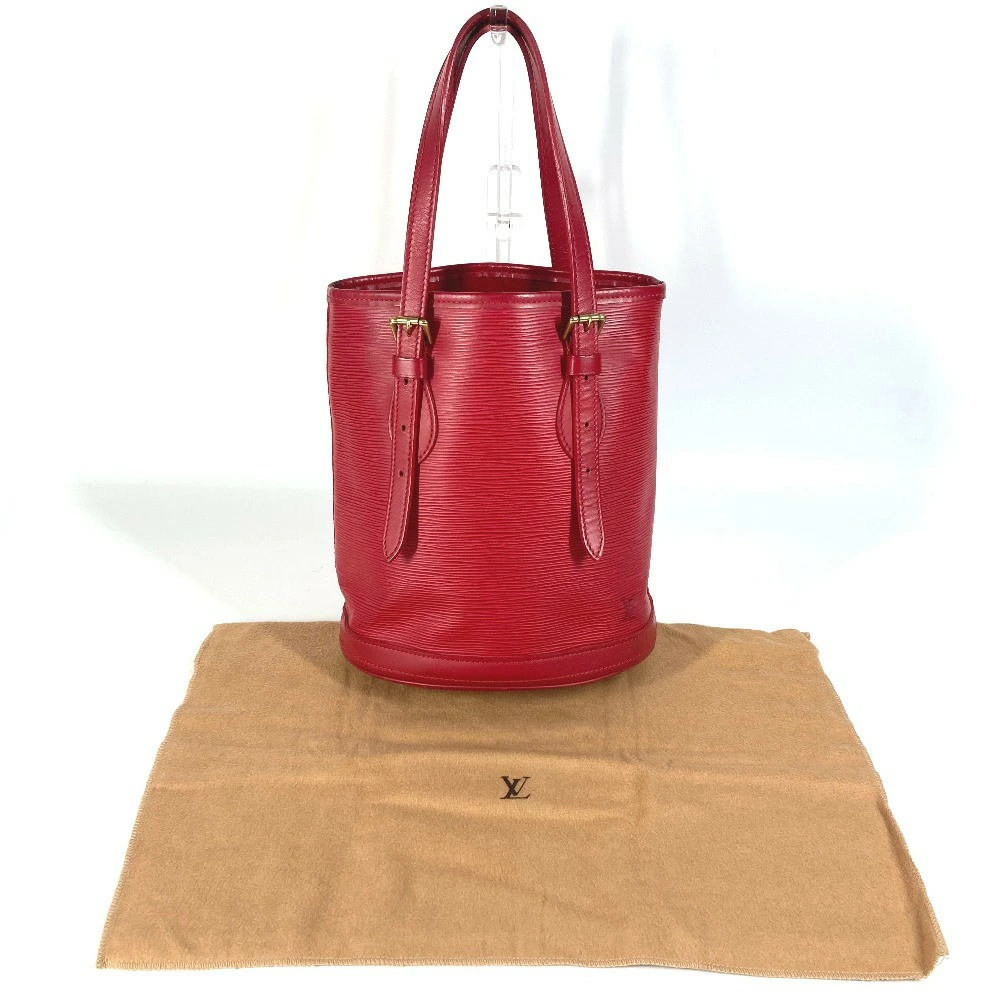 Pre-owned Louis Vuitton Epi Leather Petit Bucket PM M5899E, a bucket-shaped tote bag in Epi leather for women.