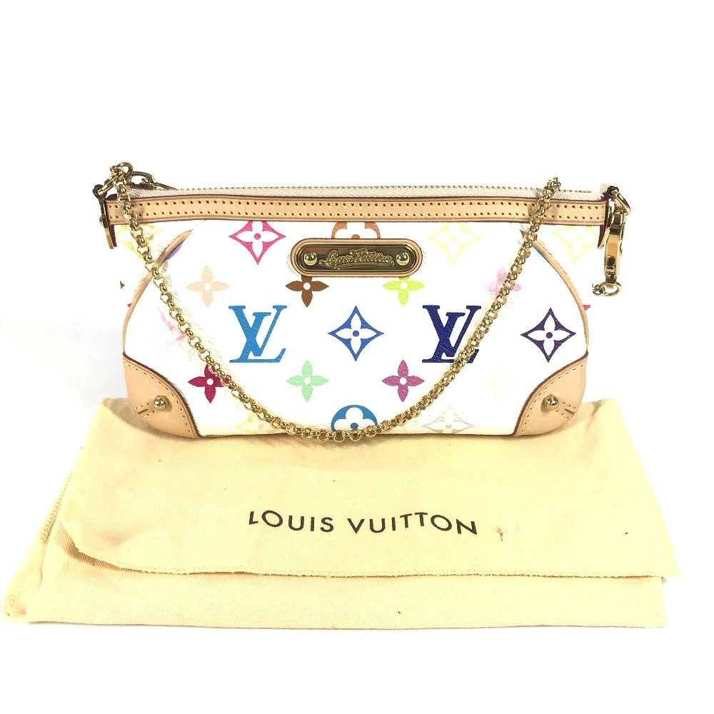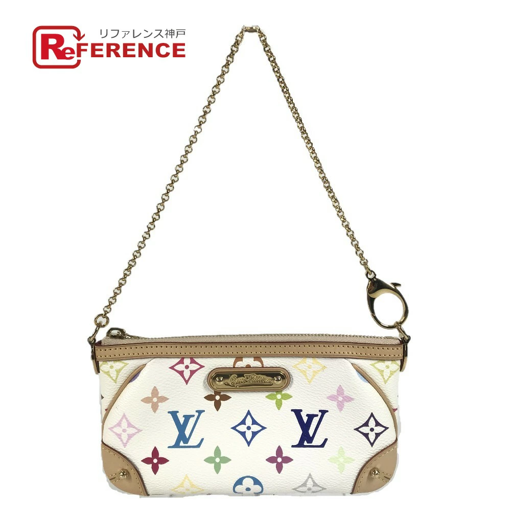Pre-owned Louis Vuitton Monogram Multicolore Pochette Mila MM (M60096). This unisex Monogram Multicolore canvas bag features a chain and is perfect as an accessory pouch, handbag, or shoulder bag. It's in blanc and white. Unused.