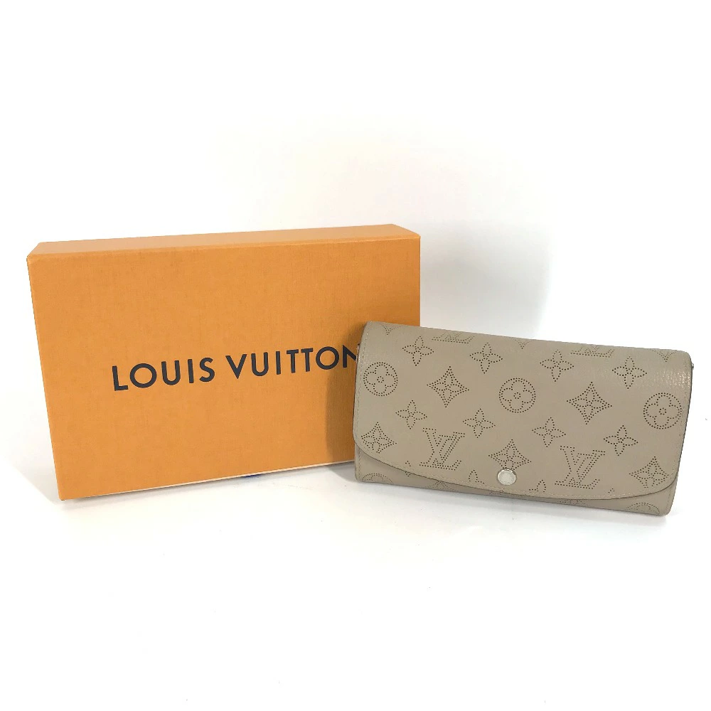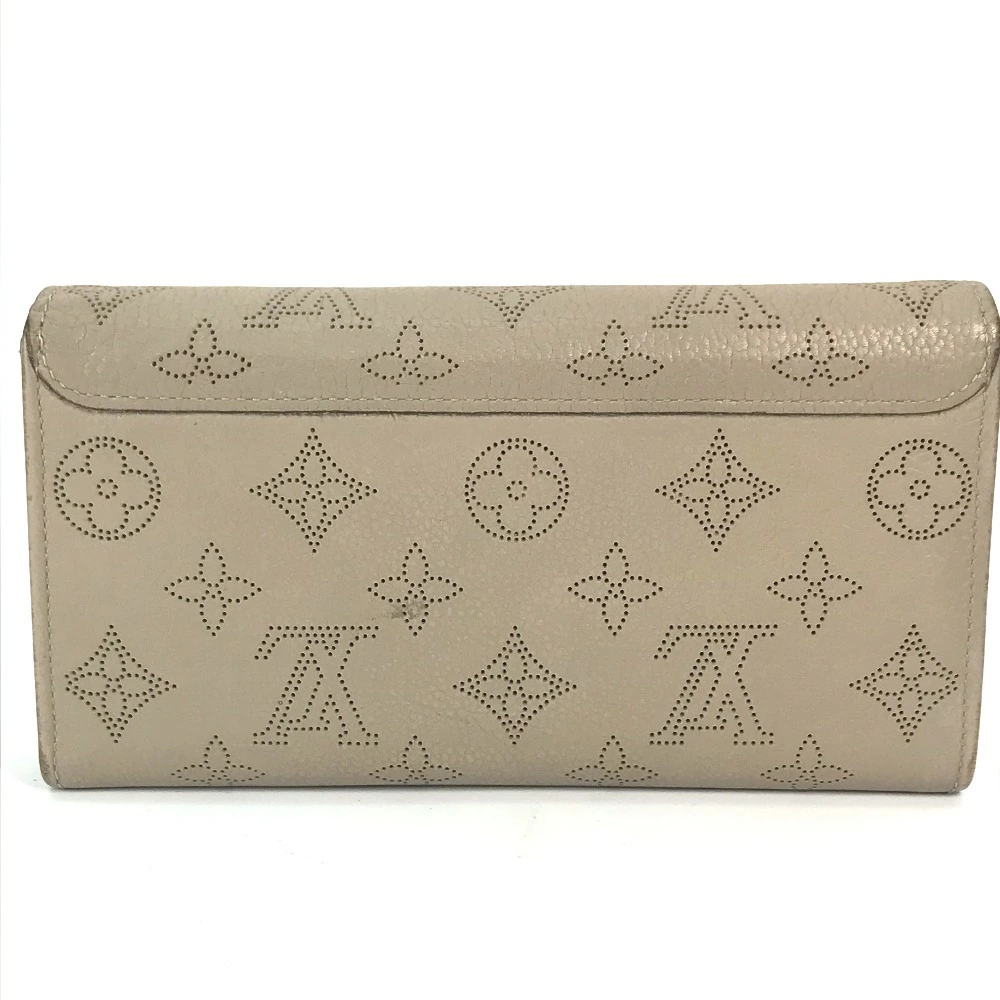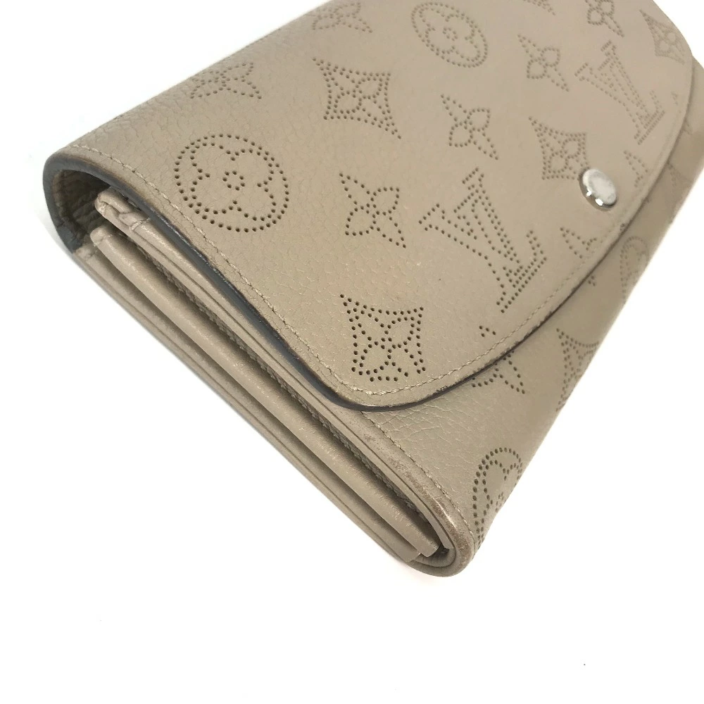 Pre-owned Louis Vuitton M60144 Monogram Mahina Portefeuille Iris Long Wallet, Women's Leather, Beige, with Flap.