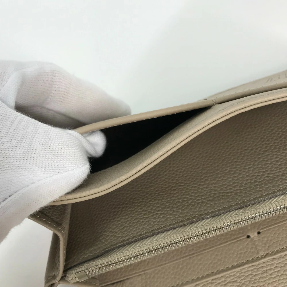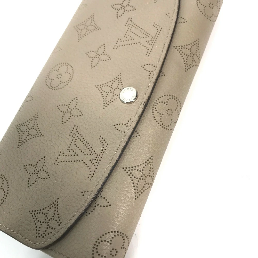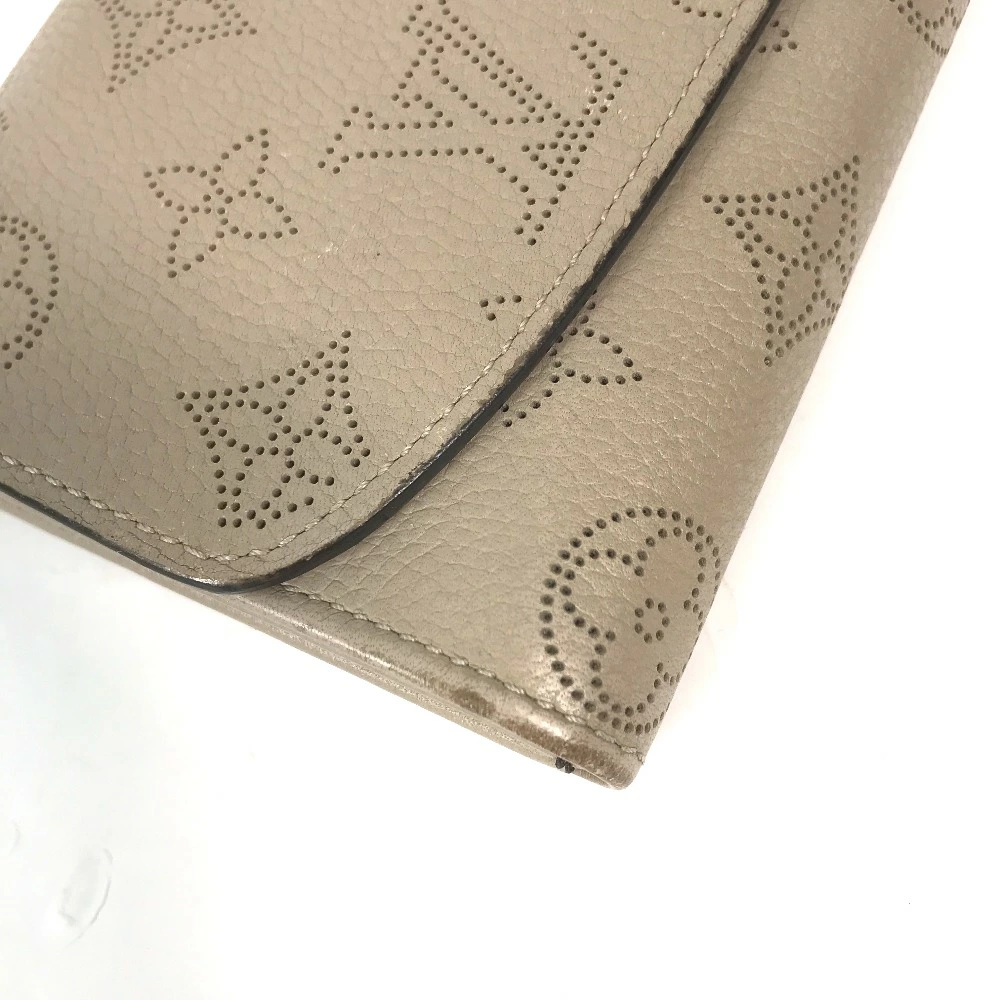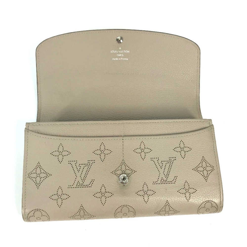 Pre-owned Louis Vuitton M60144 Monogram Mahina Portefeuille Iris Long Wallet, Women's Leather, Beige, with Flap.