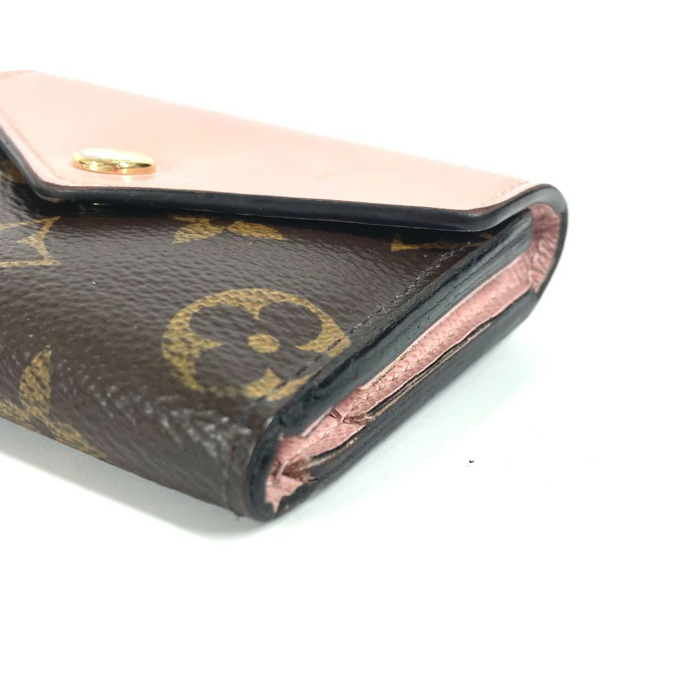 Pre-owned Louis Vuitton M62933 Monogram Portefeuille Zoe Compact Trifold Wallet in Monogram Canvas, Rose Ballerine Brown.