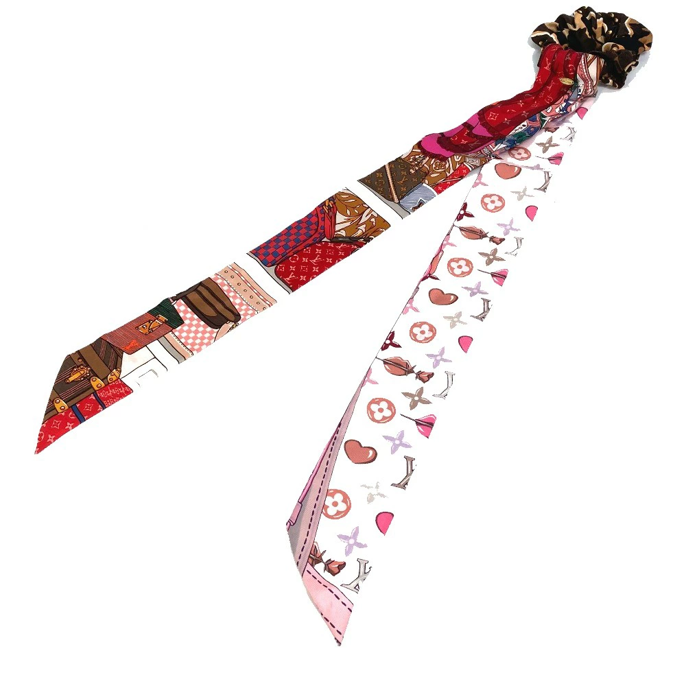 商品説明シュシュとスカーフが一緒になったアイテムです。スカーフ部分をリボンにしたり様々なアレンジを楽しめます。カラフルなのでヘアスタイルのワンポイントにもおススメです♪
