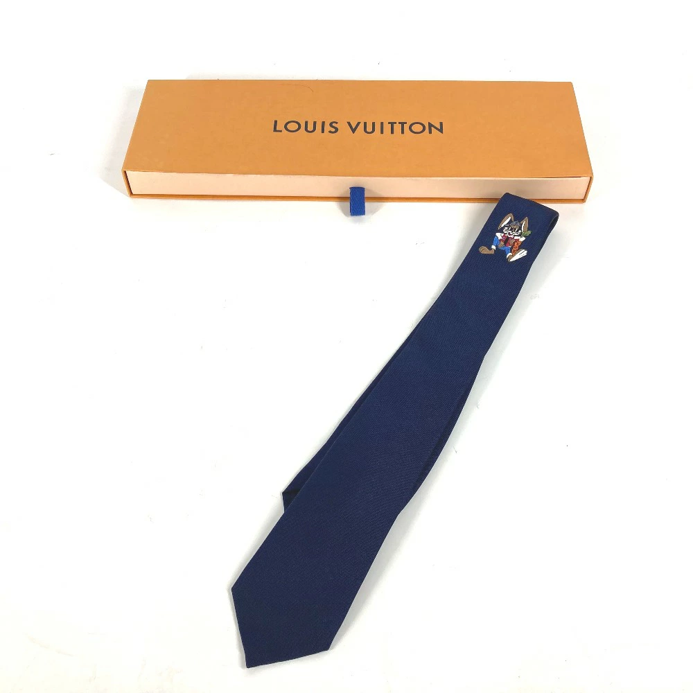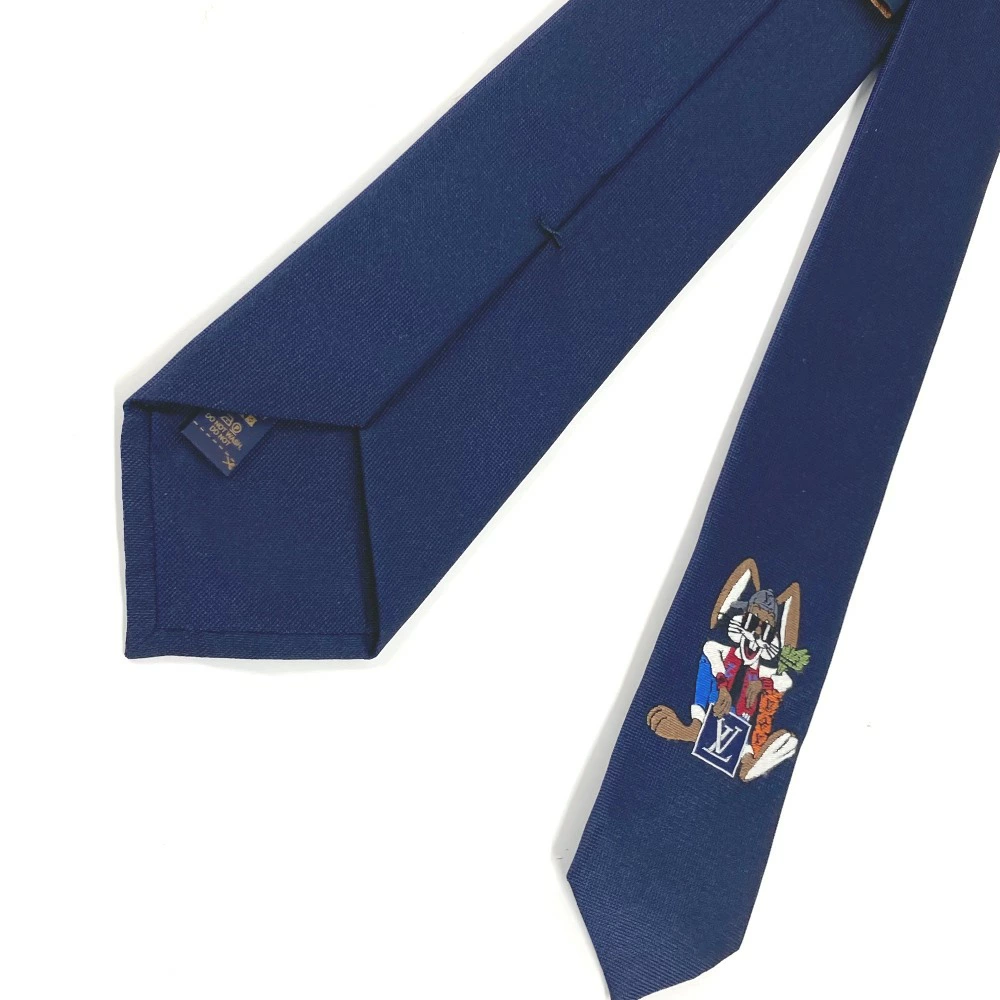 Pre-owned Louis Vuitton M78032 Rabbit Animal Cravate LV Rabbit Accessory Silk Necktie Men's Navy