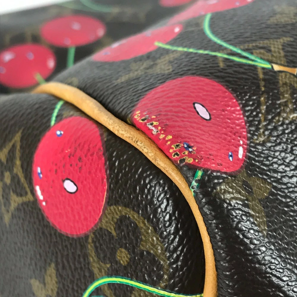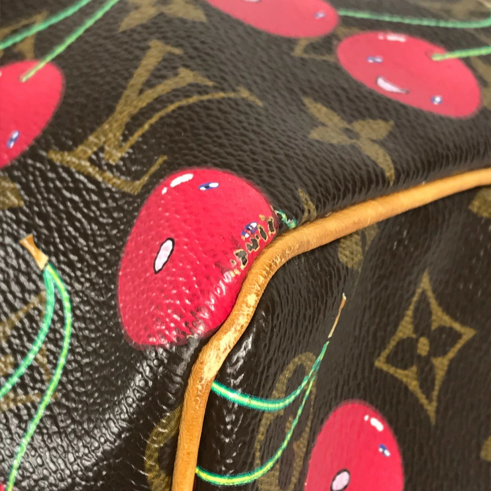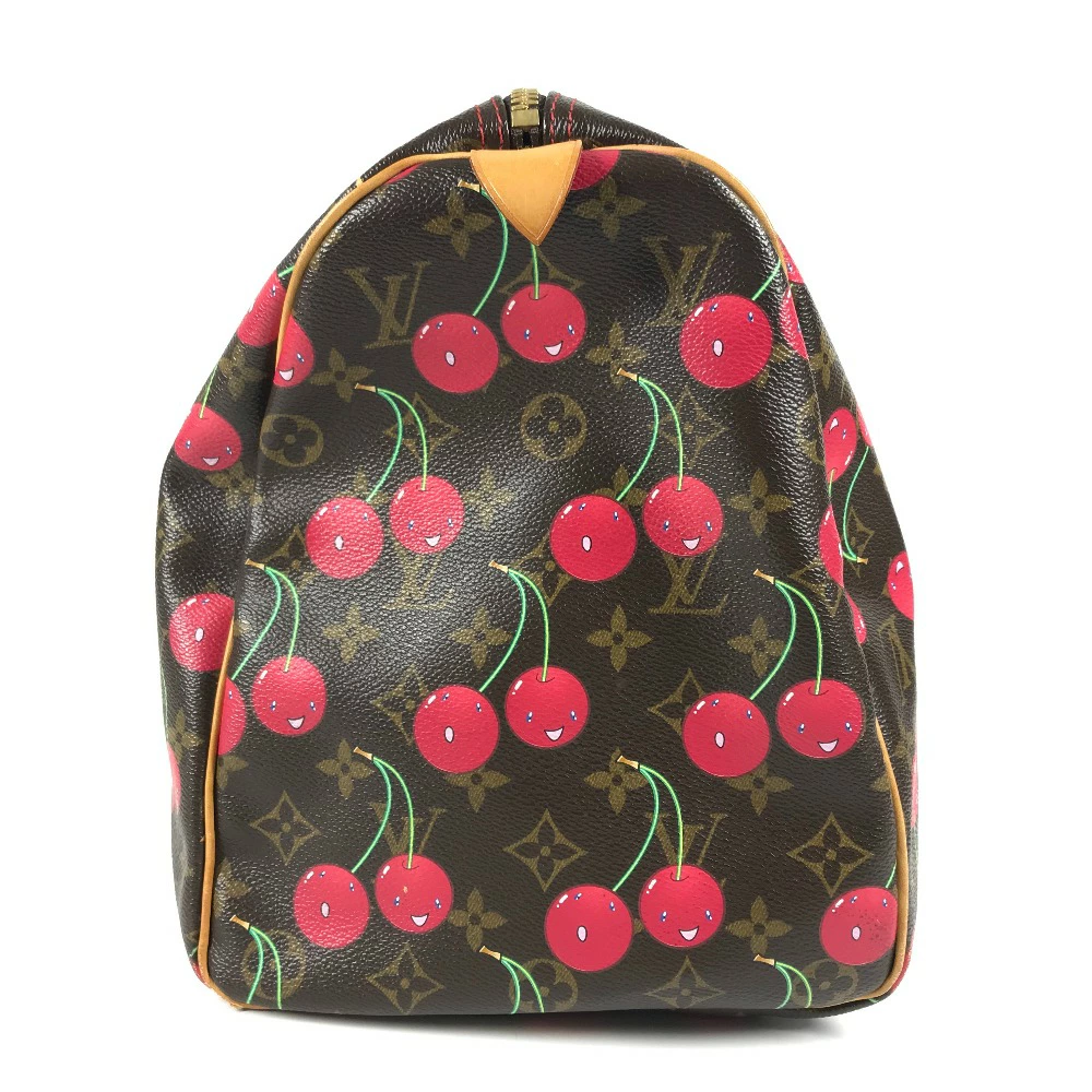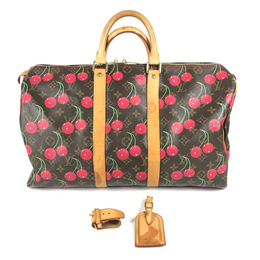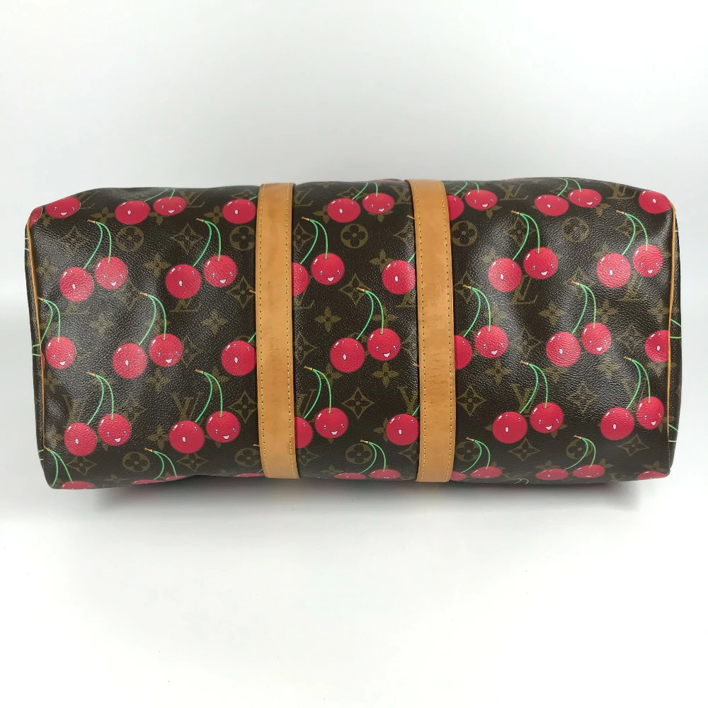 Pre-owned Louis Vuitton M95011 Monogram Cherry Keepall 45 by Takashi Murakami. This Keepall 45 travel bag/boston bag is crafted in Monogram Cherry canvas and is available in brown.