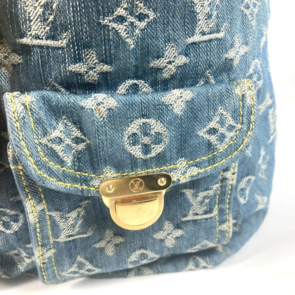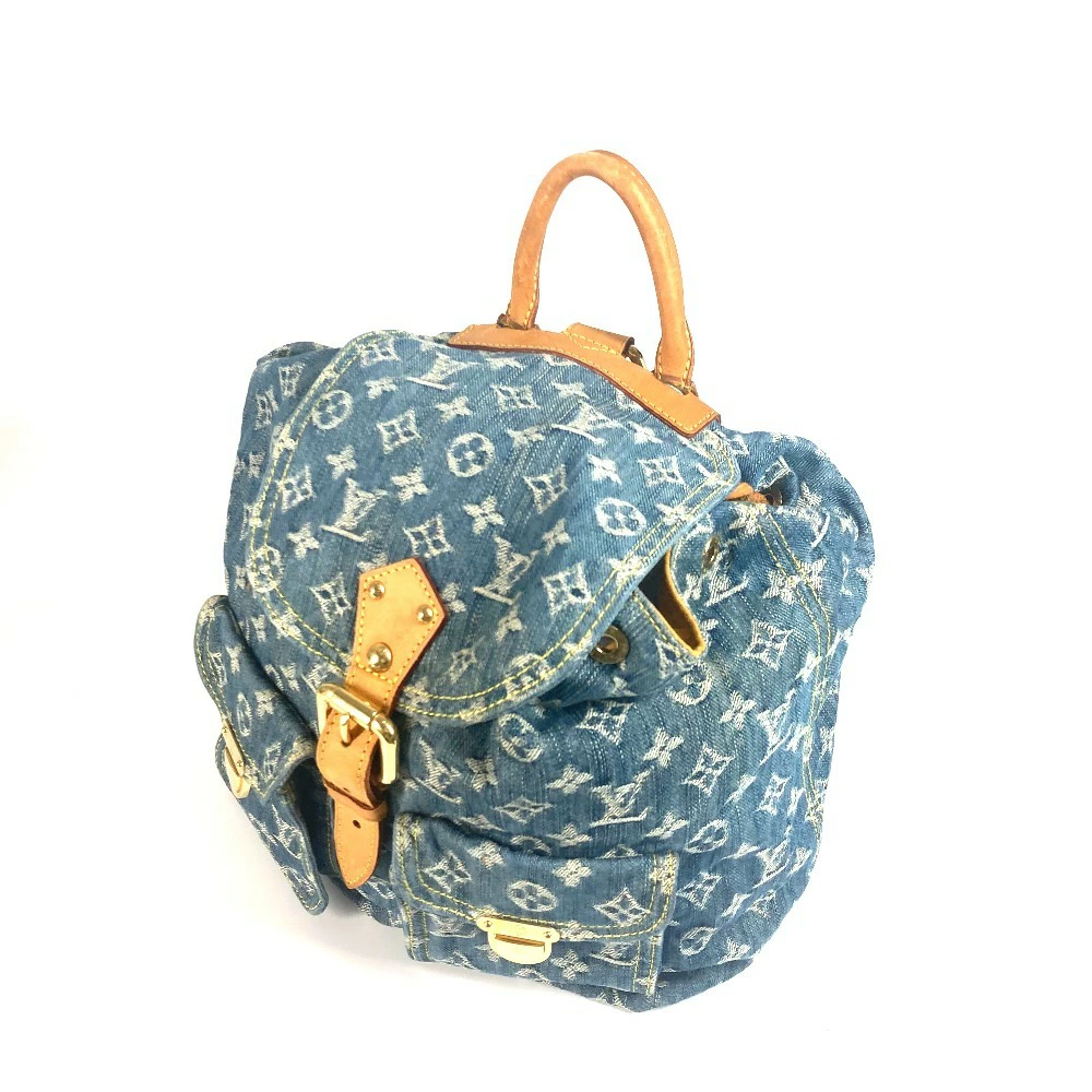 Pre-owned Louis Vuitton Monogram Denim Sac Ad GM Backpack (M95056) in Monogram Denim, unisex, blue.