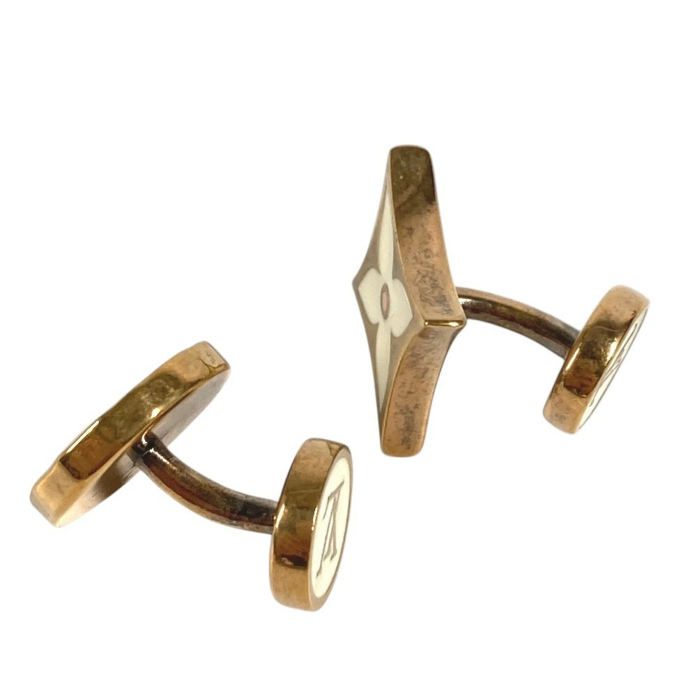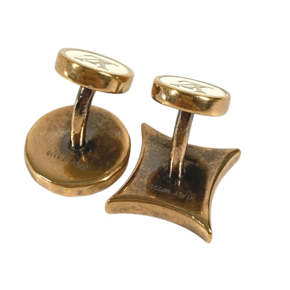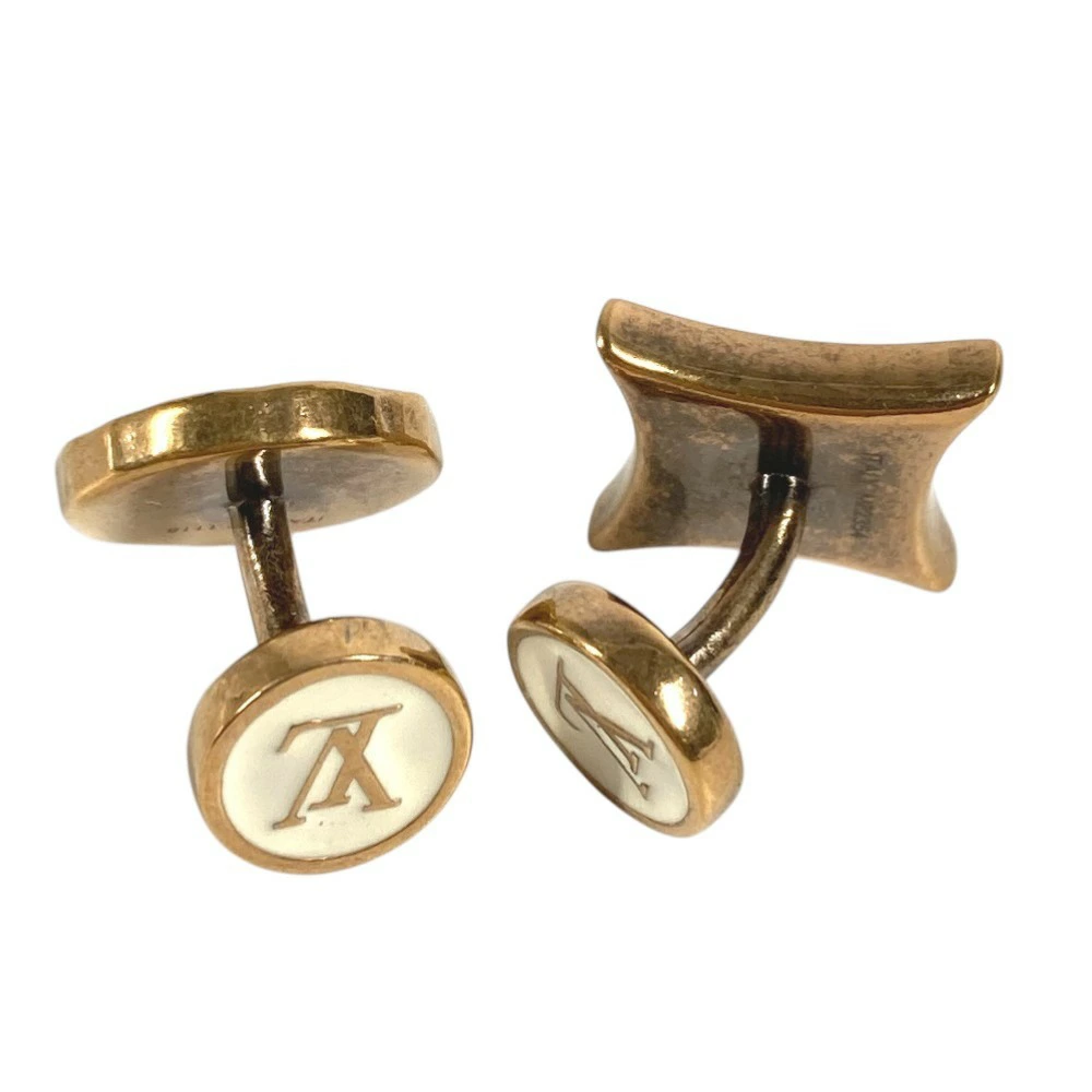 Pre-owned Louis Vuitton MP2354 Monogram Button de Manchette Monogram Cufflinks, Men's, Gold, Only 2 pieces available.