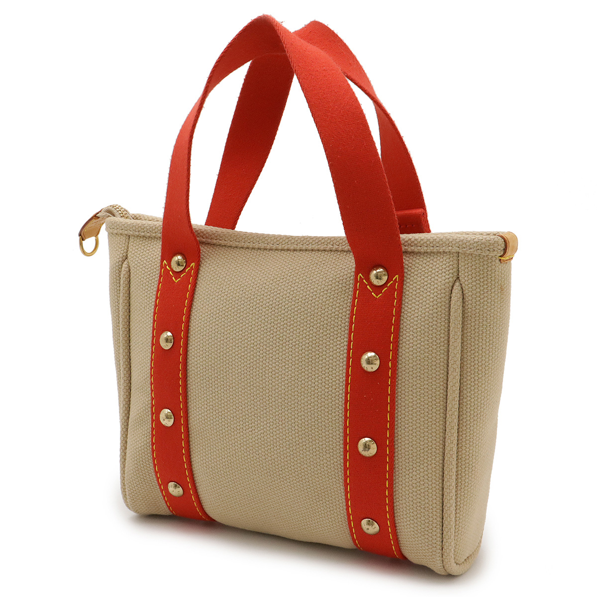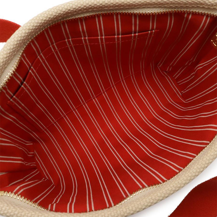 【商品説明】[サイズ]W24cm-27cm H20cm D6.5cm[材質]アンティグアキャンバス[カラー]ベージュ/ルージュ[仕様]内側ポケット1[付属品]ネームタグ(ヤケ)[重さ]約450g