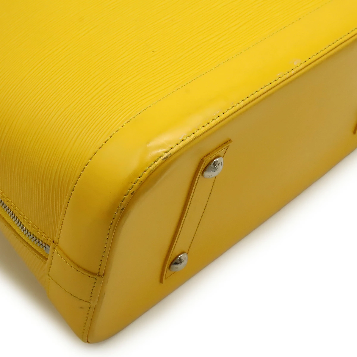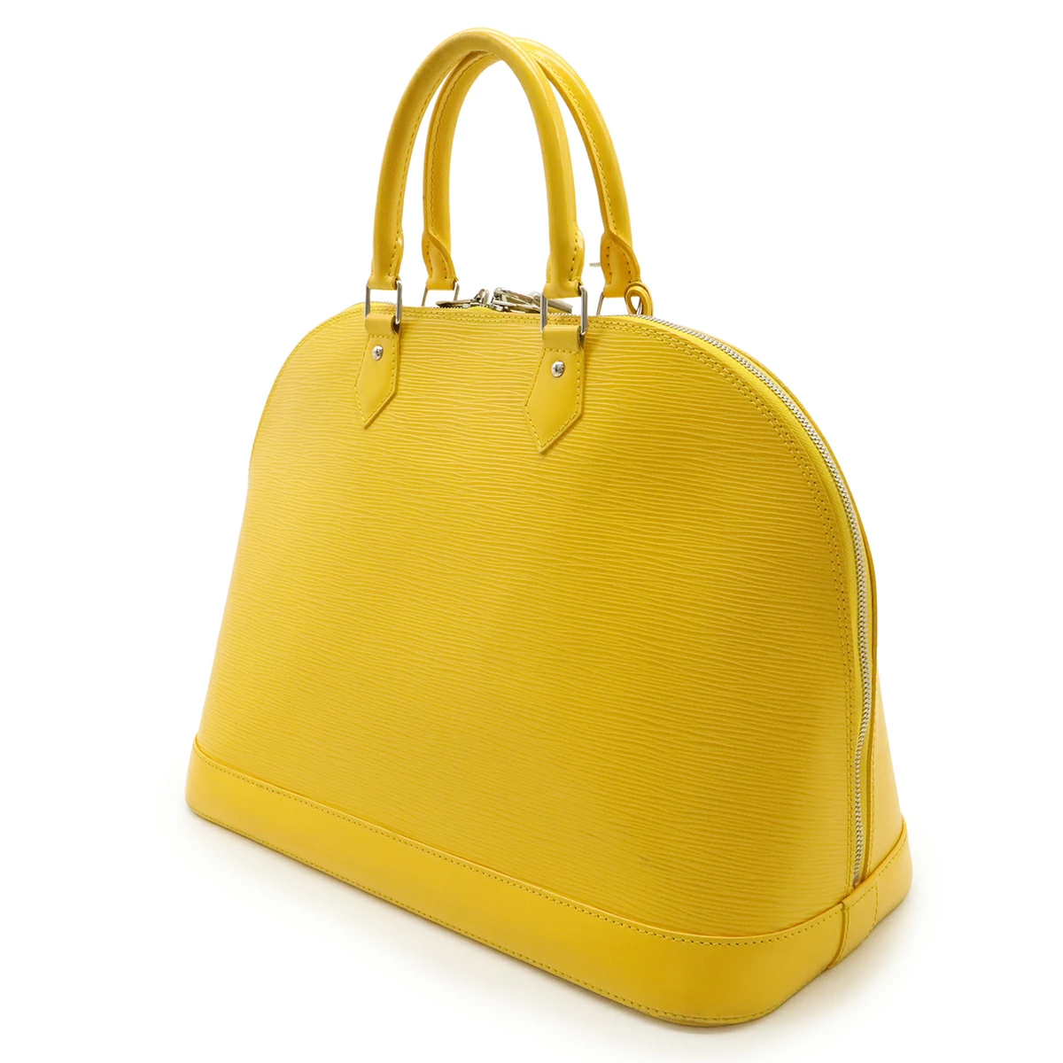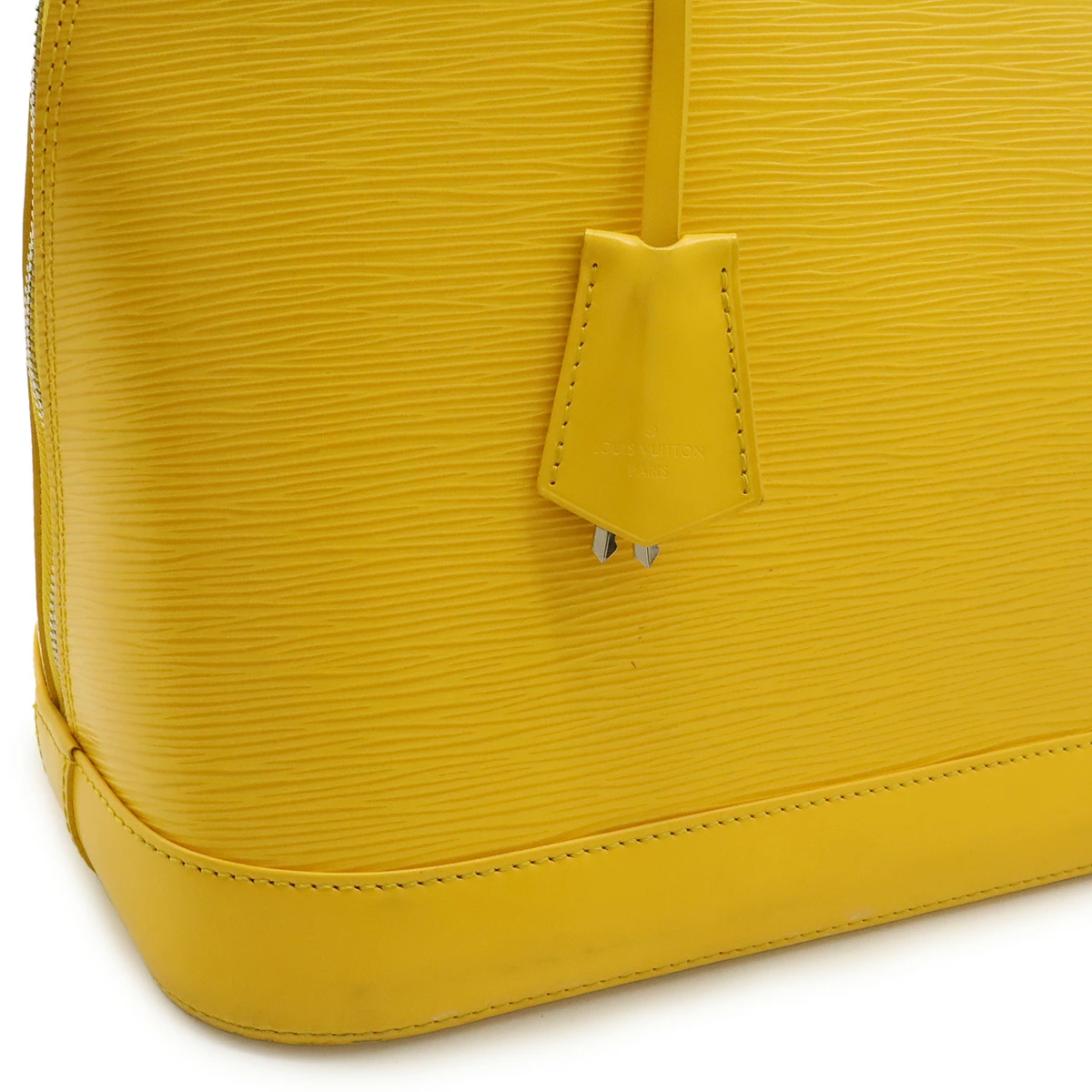 Pre-owned Louis Vuitton Epi Alma GM handbag in citron-yellow leather with silver hardware, model M40452.