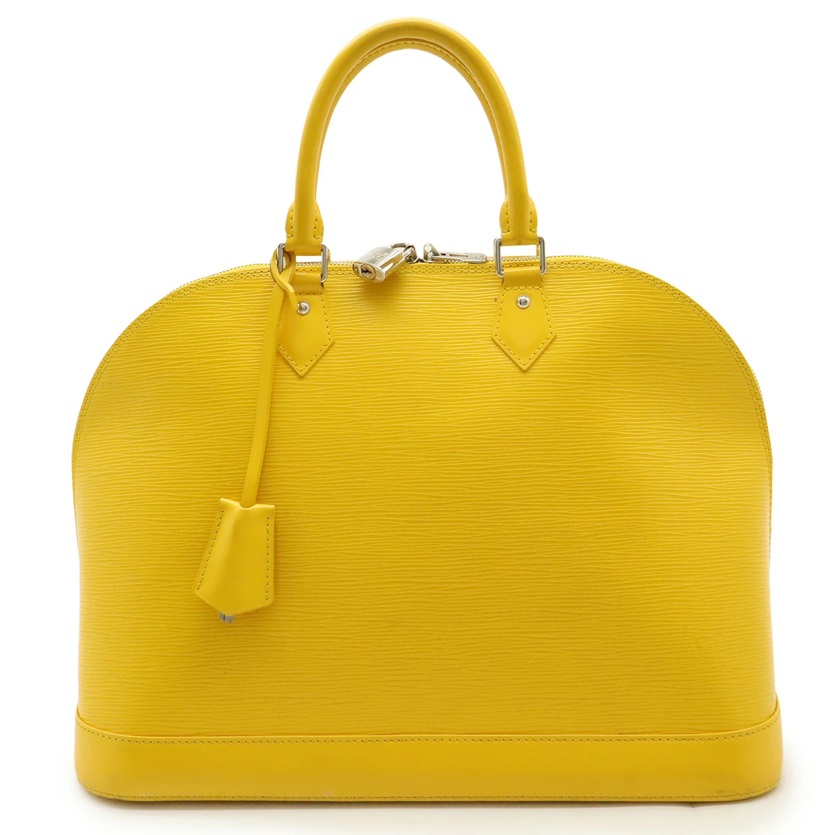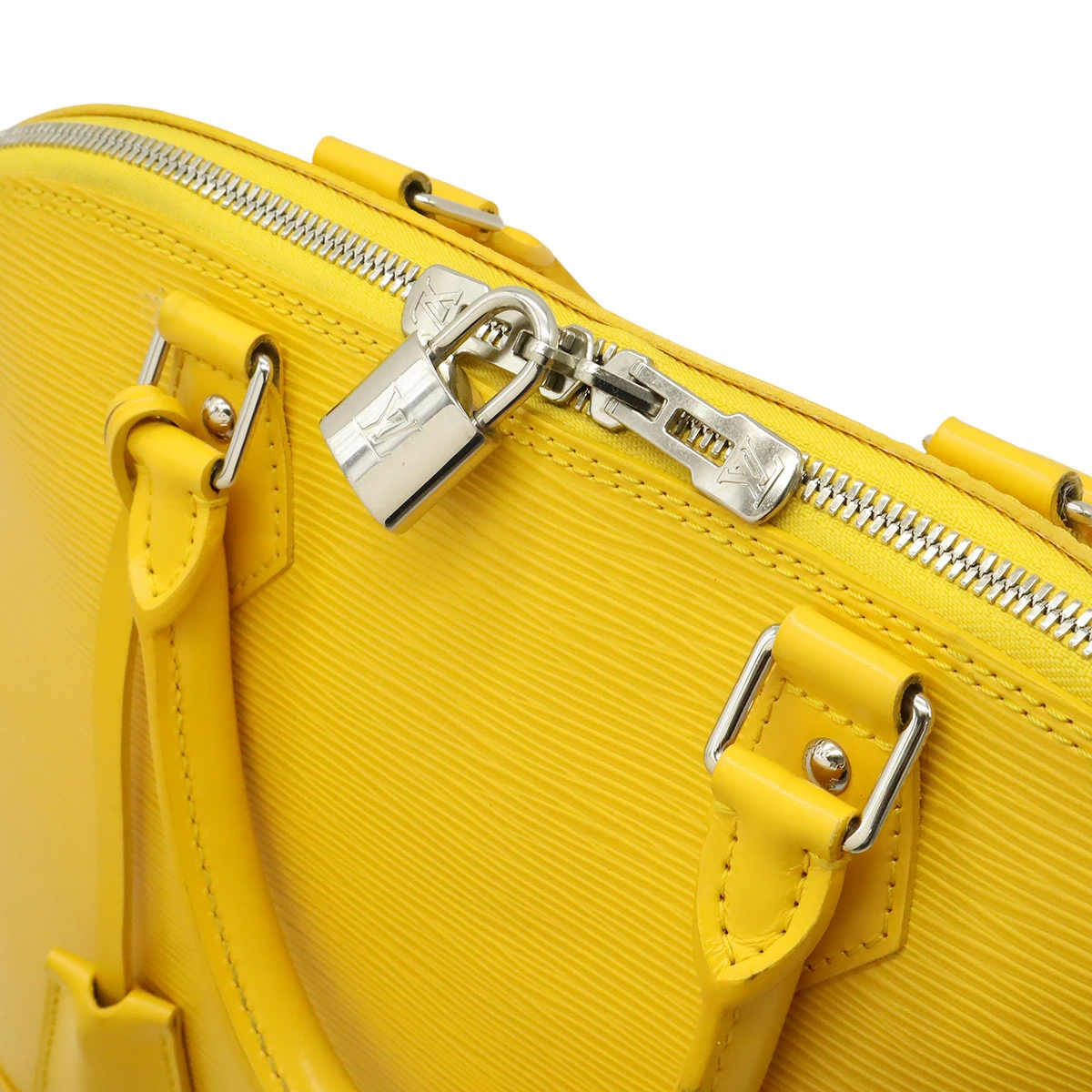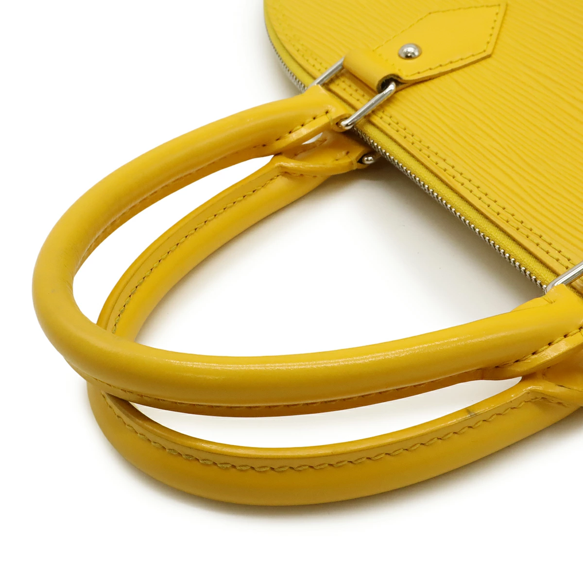 Pre-owned Louis Vuitton Epi Alma GM handbag in citron-yellow leather with silver hardware, model M40452.