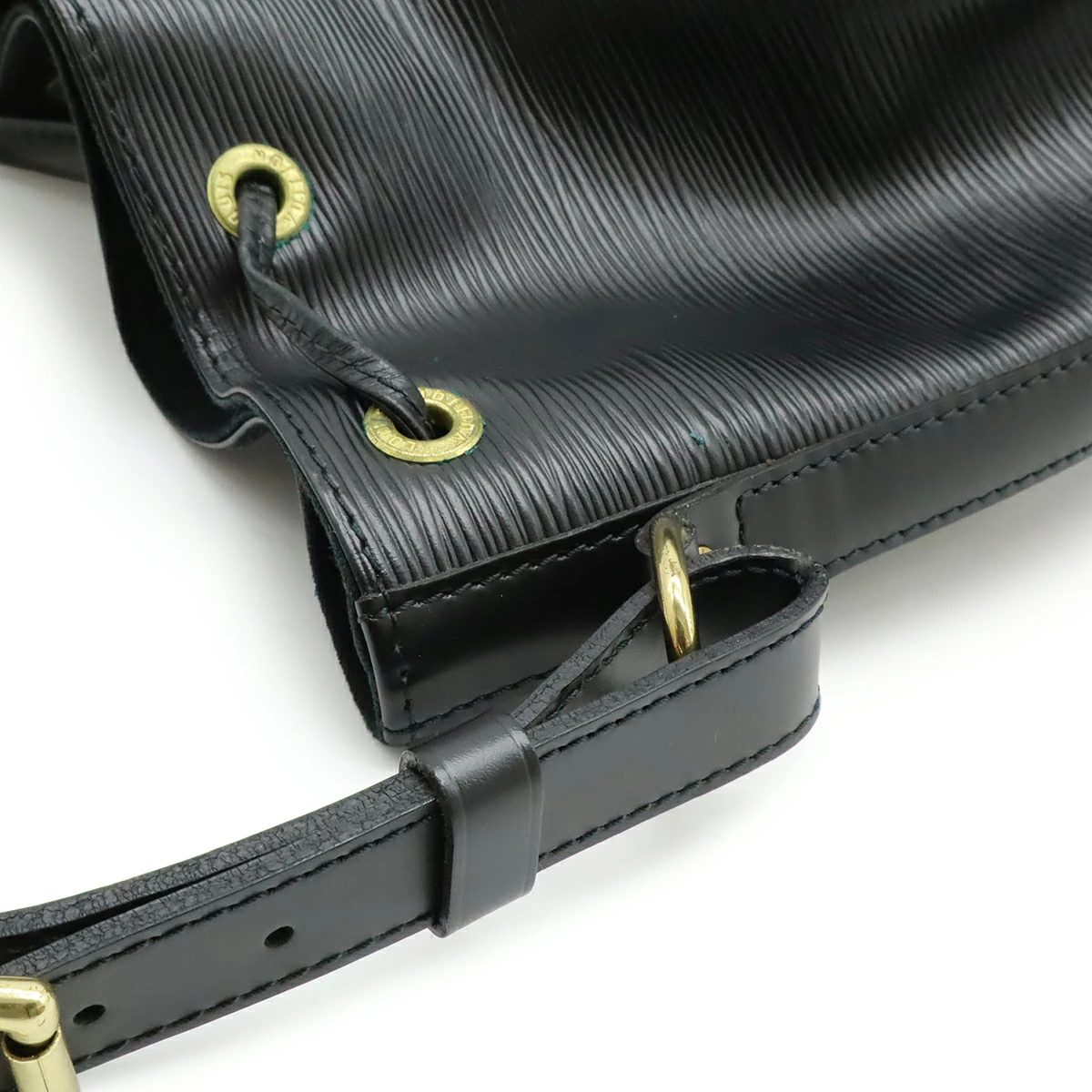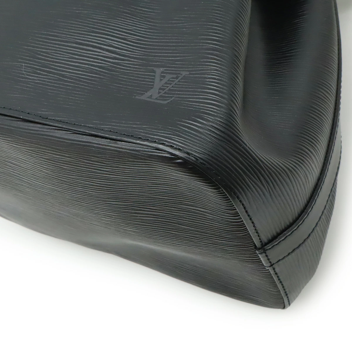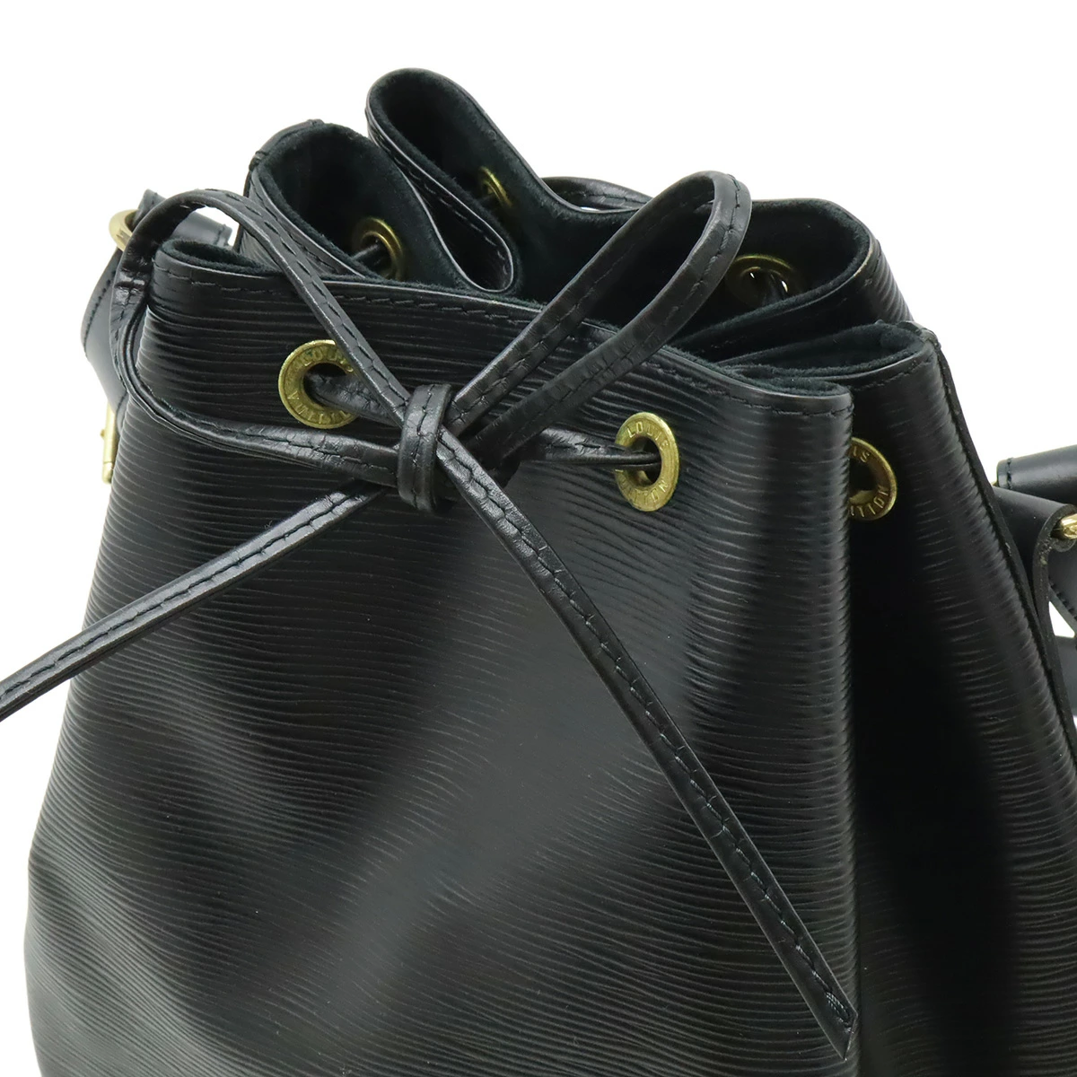 シックなブラックカラーの上質なエピレザーが高級感のある定番の巾着型ショルダーバッグ。