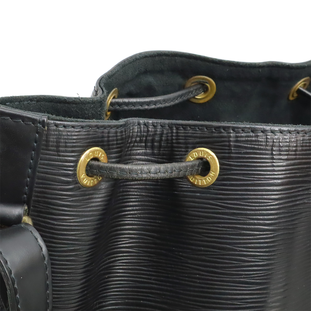 【コメント】一般的な使用感のあるお品物となっております。シックなブラックカラーの上質なエピレザーが高級感のある定番の巾着型ショルダーバッグ。マチがあるので収納力もあり、普段使いからお出かけまで幅広くお使いいただけます。