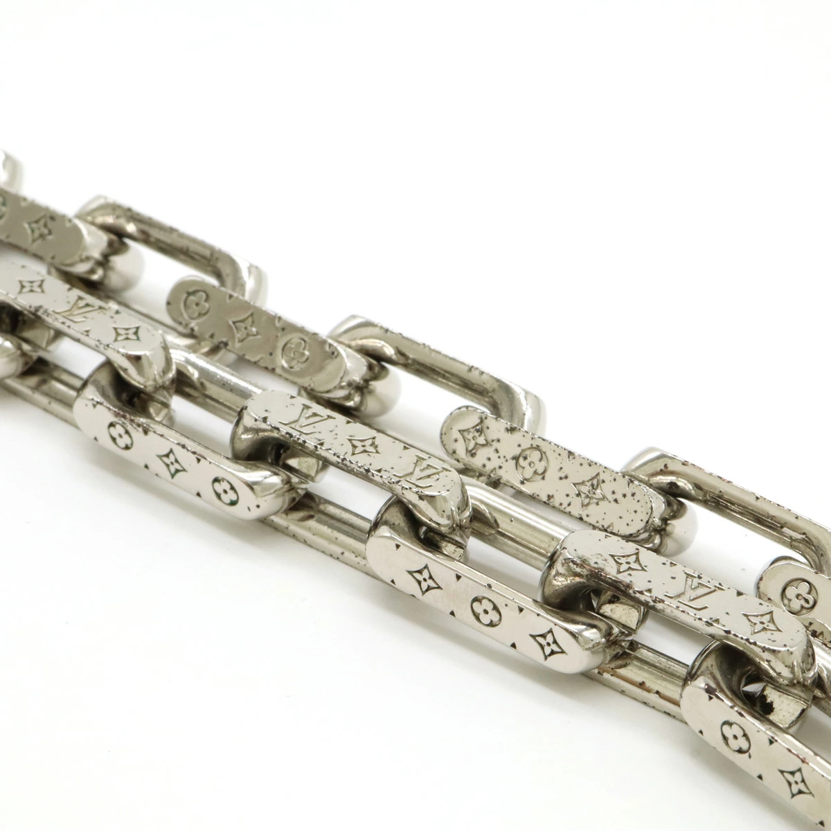 スレ、プツプツとした凹凸、フチ若干のメッキ剥げ