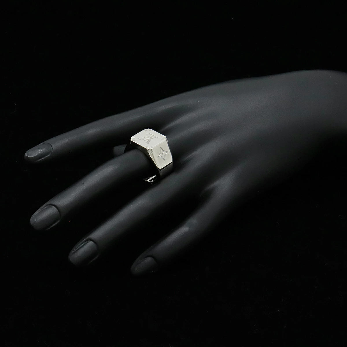 モノグラムのロゴがモチーフになった存在感のあるオシャレなメンズリングでございます。