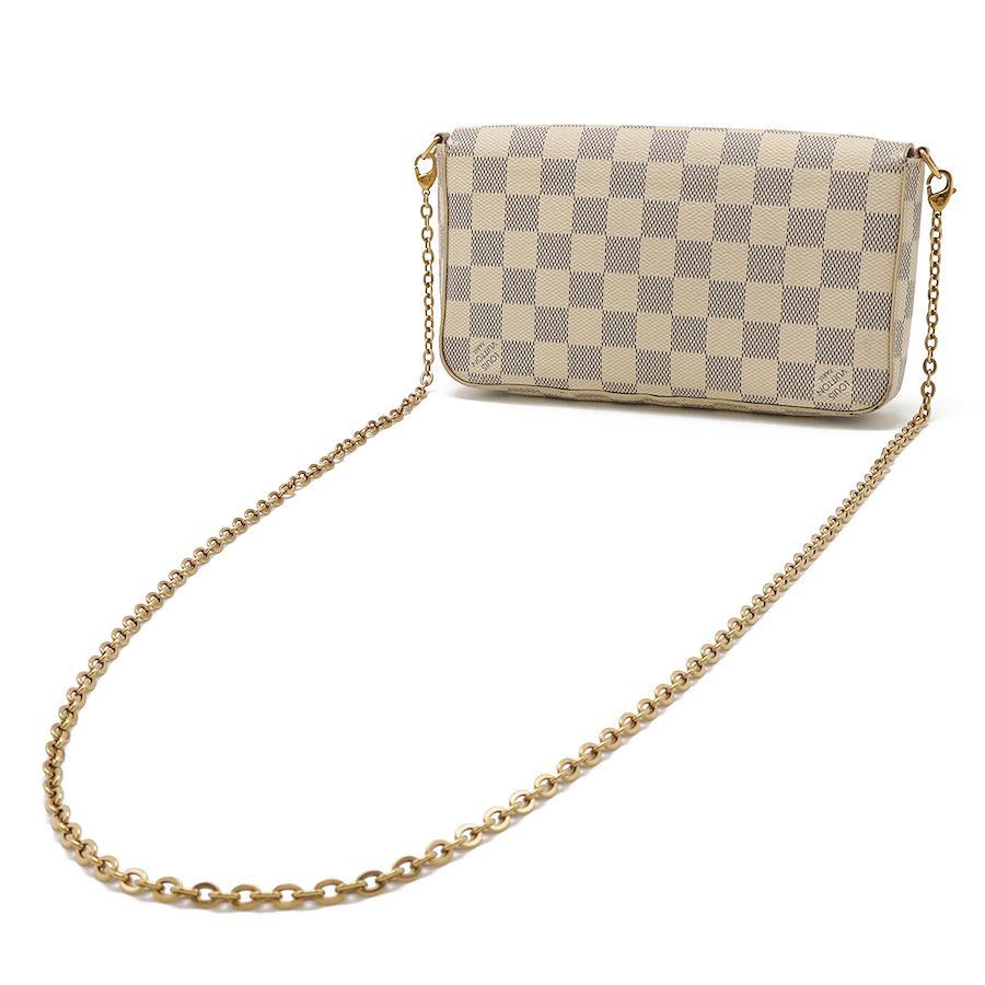 【商品説明】[サイズ]W21cm H12cm D3cm ショルダーストラップ長さ約116cm(調節不可、金具含む)[材質]ダミエ・アズール キャンバス(PVCコーティングキャンバス)[カラー]アイボリー[仕様]内側ポケット1[付属品]ショルダーストラップ コインケース カードケース(若干の膨らみ)[重さ]約350g