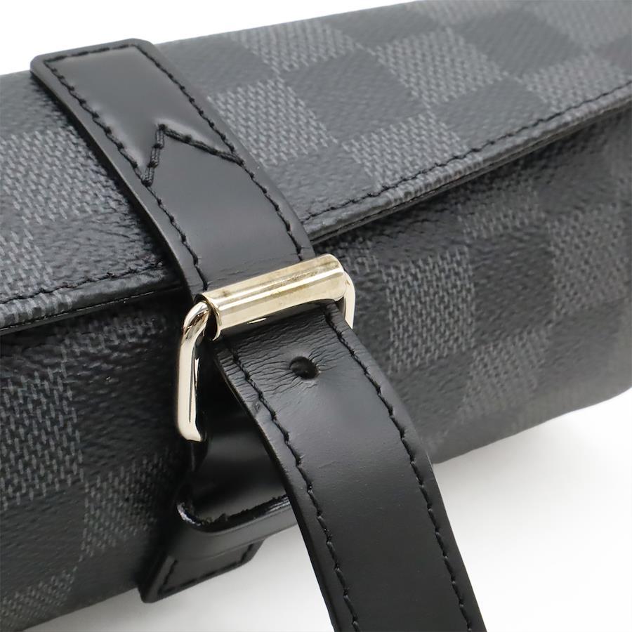 LOUIS VUITTON Damier Graphite Etui 3-Montres Watch Case, Cylindrical Multi-Pouch N41137