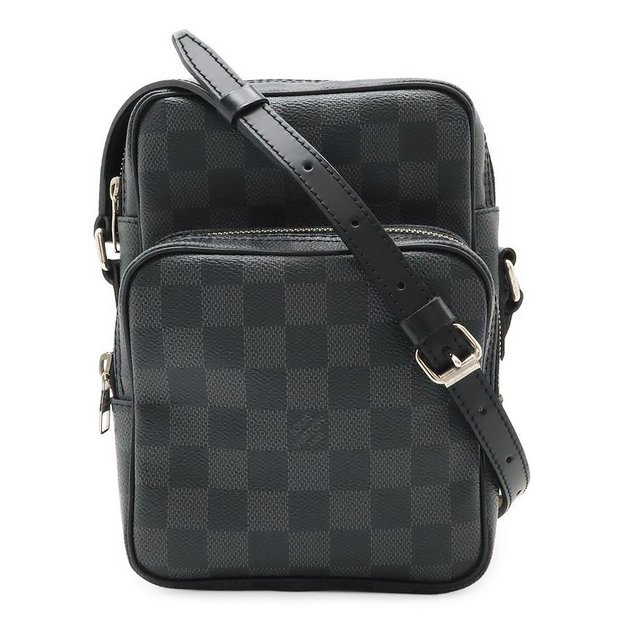 【商品説明】[サイズ]W15cm H21cm D9.5cm ショルダー最長約145cm(8段階調節可、金具含む)[材質]ダミエ・グラフィット キャンバス(PVCコーティングキャンバス)[カラー]ブラック/グレー[仕様]外側ファスナーポケット1、内側ポケット1[付属品]なし[重さ]約440g