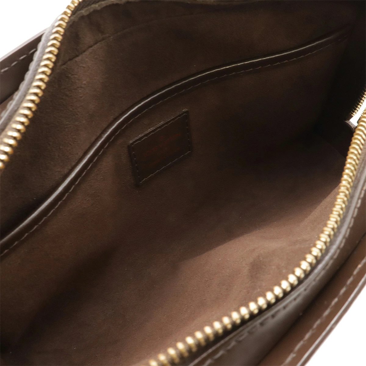 コンパクトで持ち運びしやすく、ストラップをサイドスペースに収納可能なシックでスタイリッシュなセカンドバッグ。