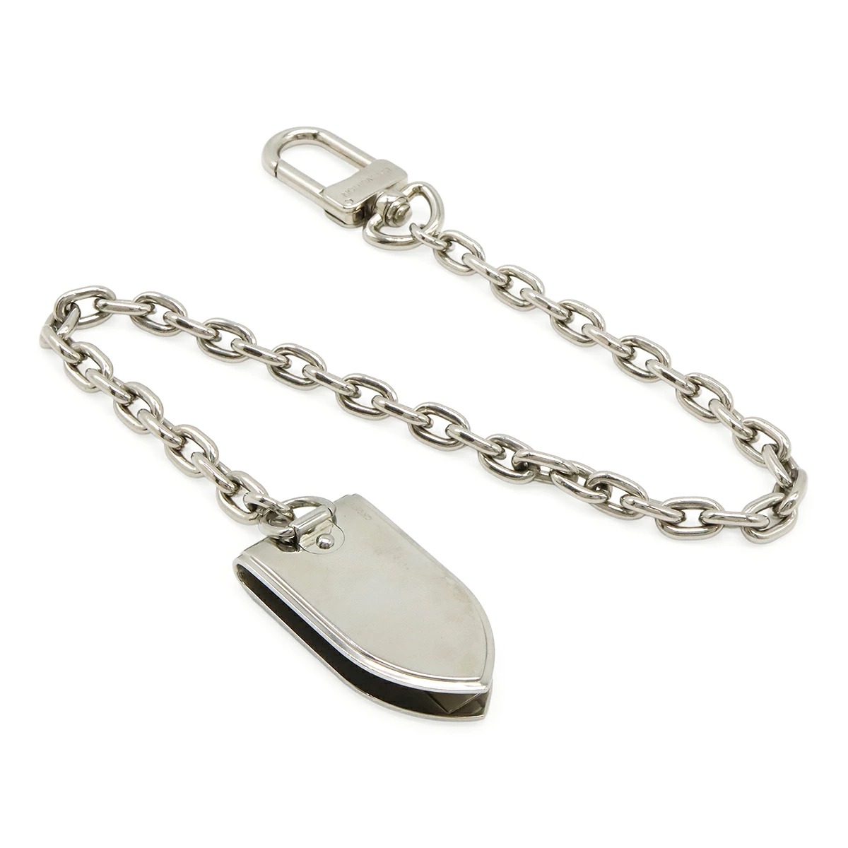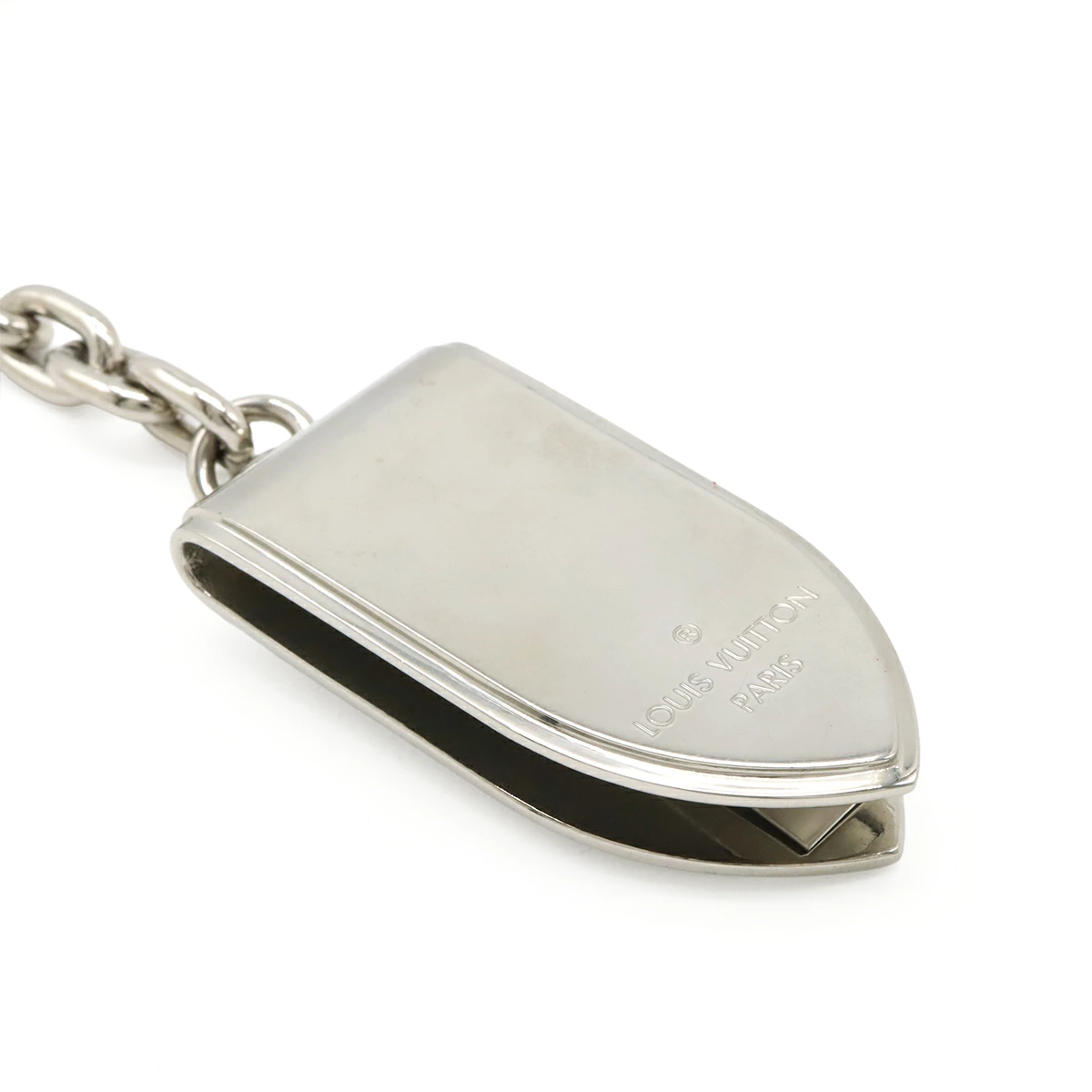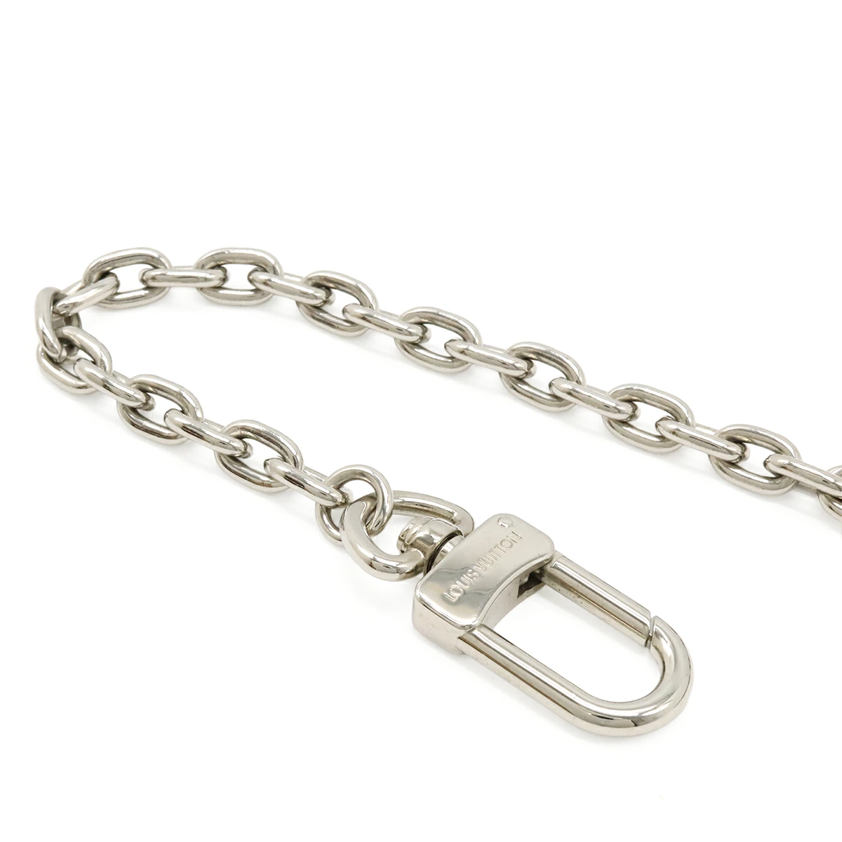 ルイヴィトンロゴの刻印がアクセントになっており、チェーン付で使い易いお品物でございます。