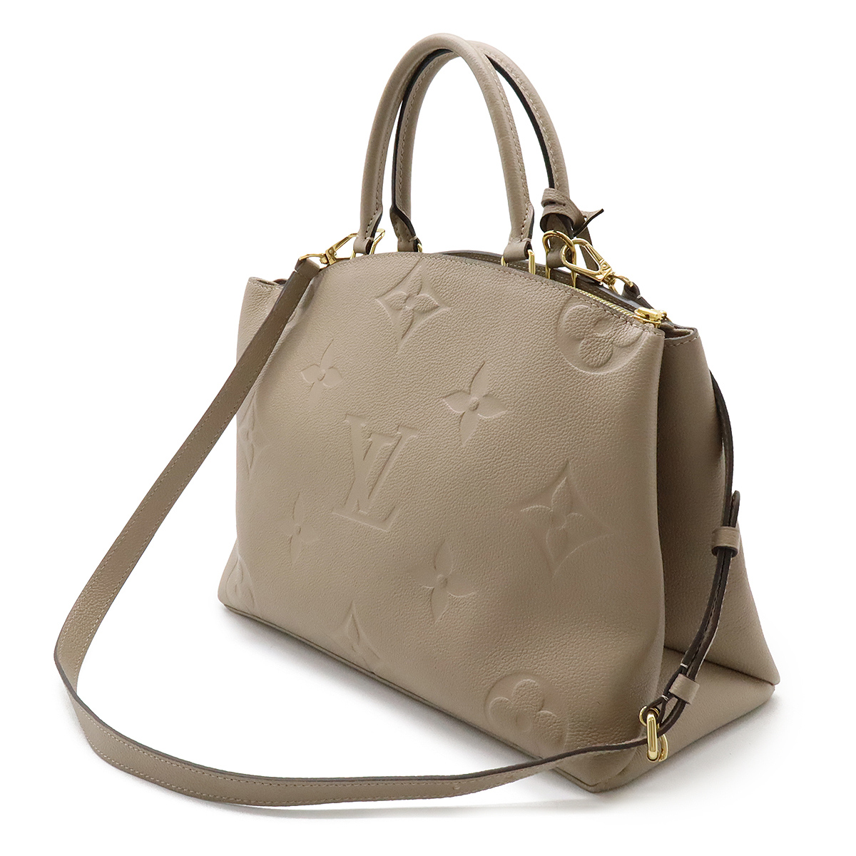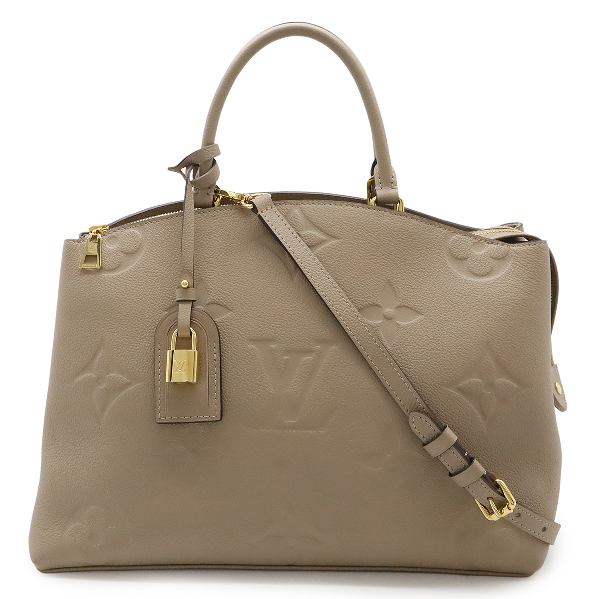 【コメント】型崩れがございますが、その他は状態の良いお品物でございます。シックな雰囲気と抜群の機能性が魅力の「グラン・パレ MM」。モノグラム・ジャイアントパターンをエンボス加工で施したしなやかなグレインレザーで仕上げました。ネームタグとゴールドカラーのパドロックに、メゾンならではの旅の伝統が薫ります。内装には中身を整理しやすい複数のポケットとコンパートメントを備えた、デイリーからビジネスシーンまで活躍するバッグです。取外し&調節可能なストラップ付きで、手持ちや腕に掛けるだけでなく、クロスボディバッグとしてなどさまざまな持ち方を楽しめます。