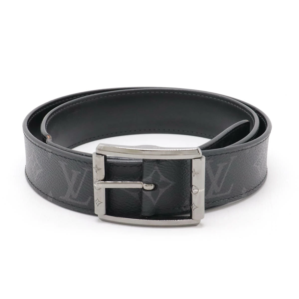 Pre-owned Louis Vuitton Monogram Eclipse Santur LV Uptown Belt #90 with Silver Hardware, M0541U
