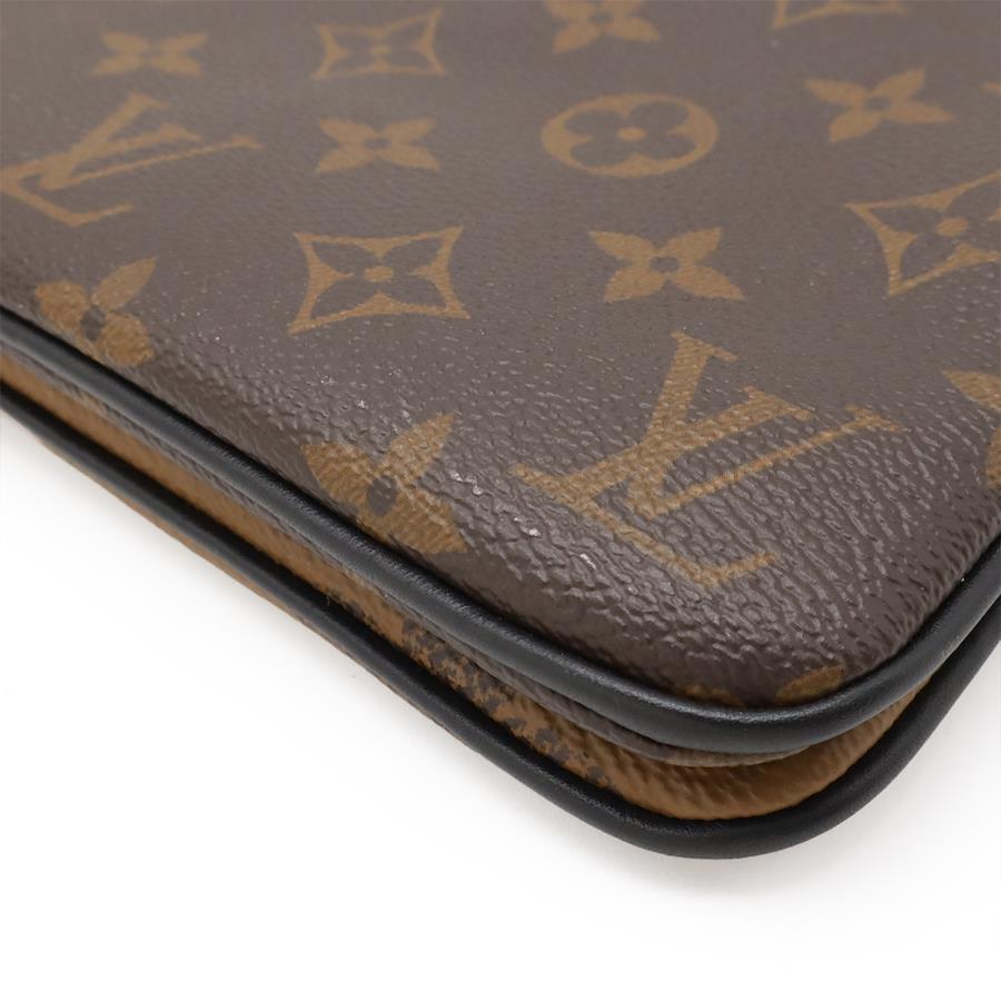 【商品説明】[サイズ]W21cm H13cm D2.5cm ショルダーストラップ最長約119cm(5段階調節可、金具含む)[材質]モノグラム・キャンバス(PVC)/モノグラム・リバースキャンバス(PVC)/レザー[カラー]ブラウン/ライトブラウン[仕様]内側ポケット1、カードポケット3[付属品]ショルダーストラップ[重さ]約240g