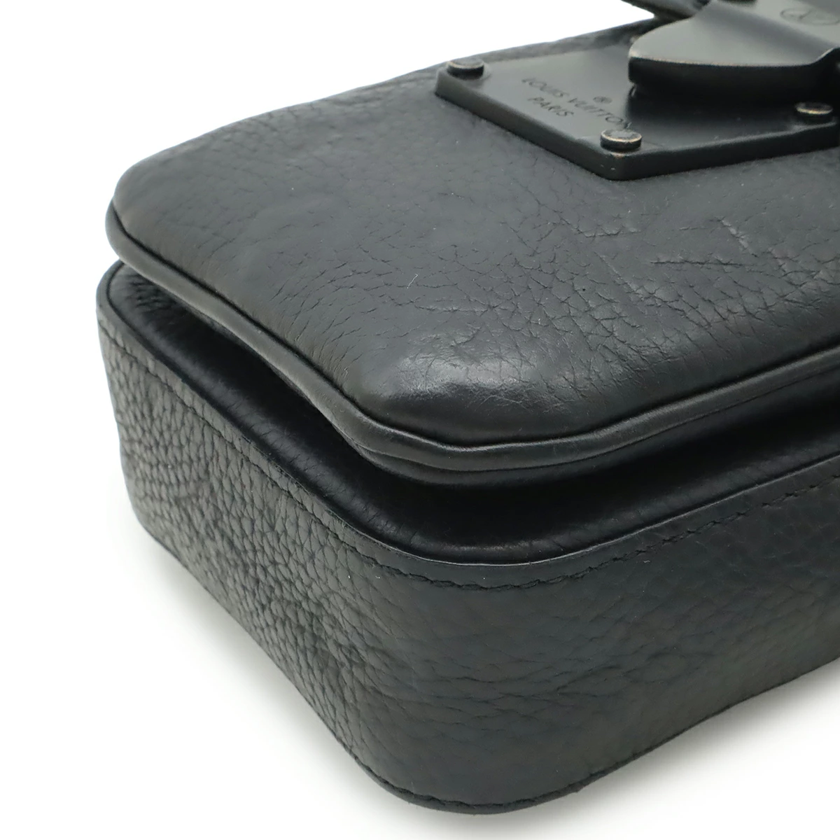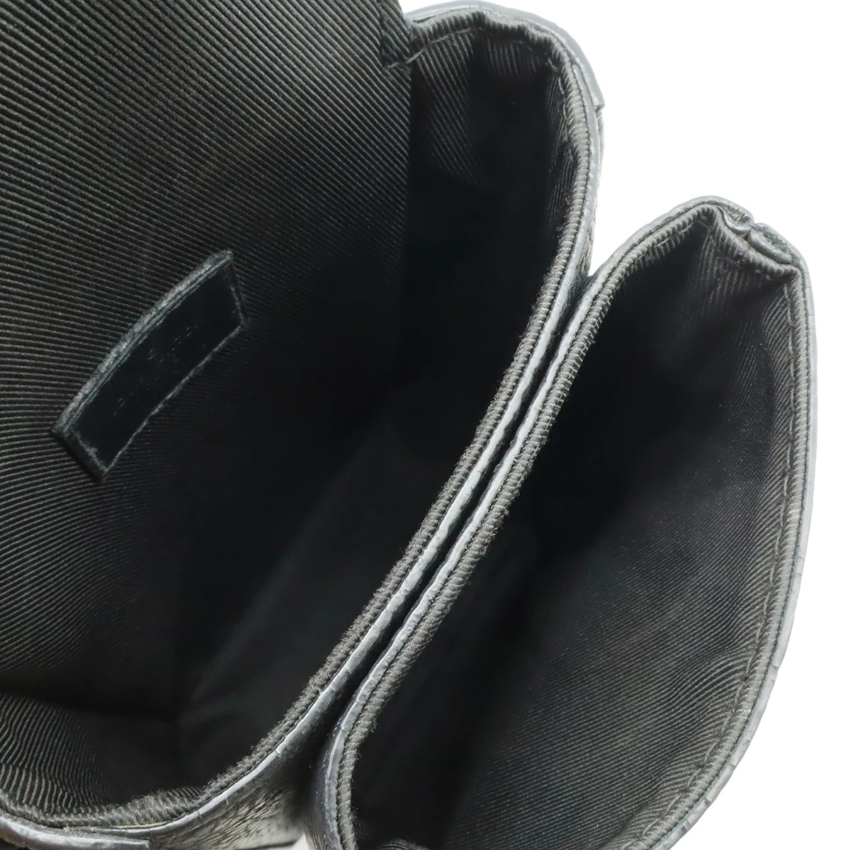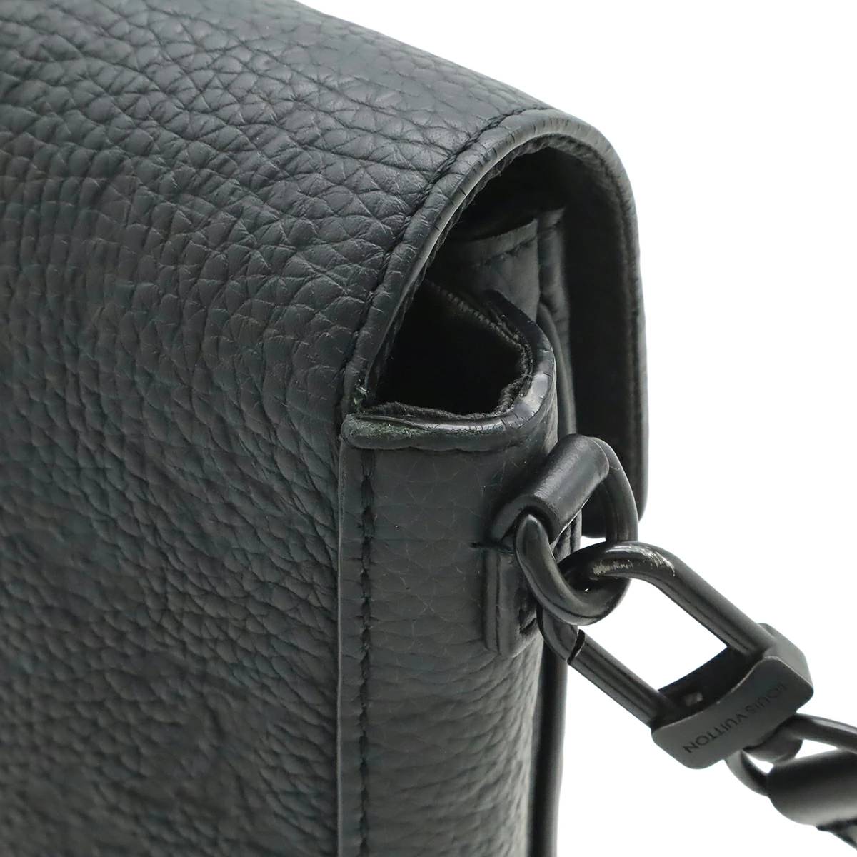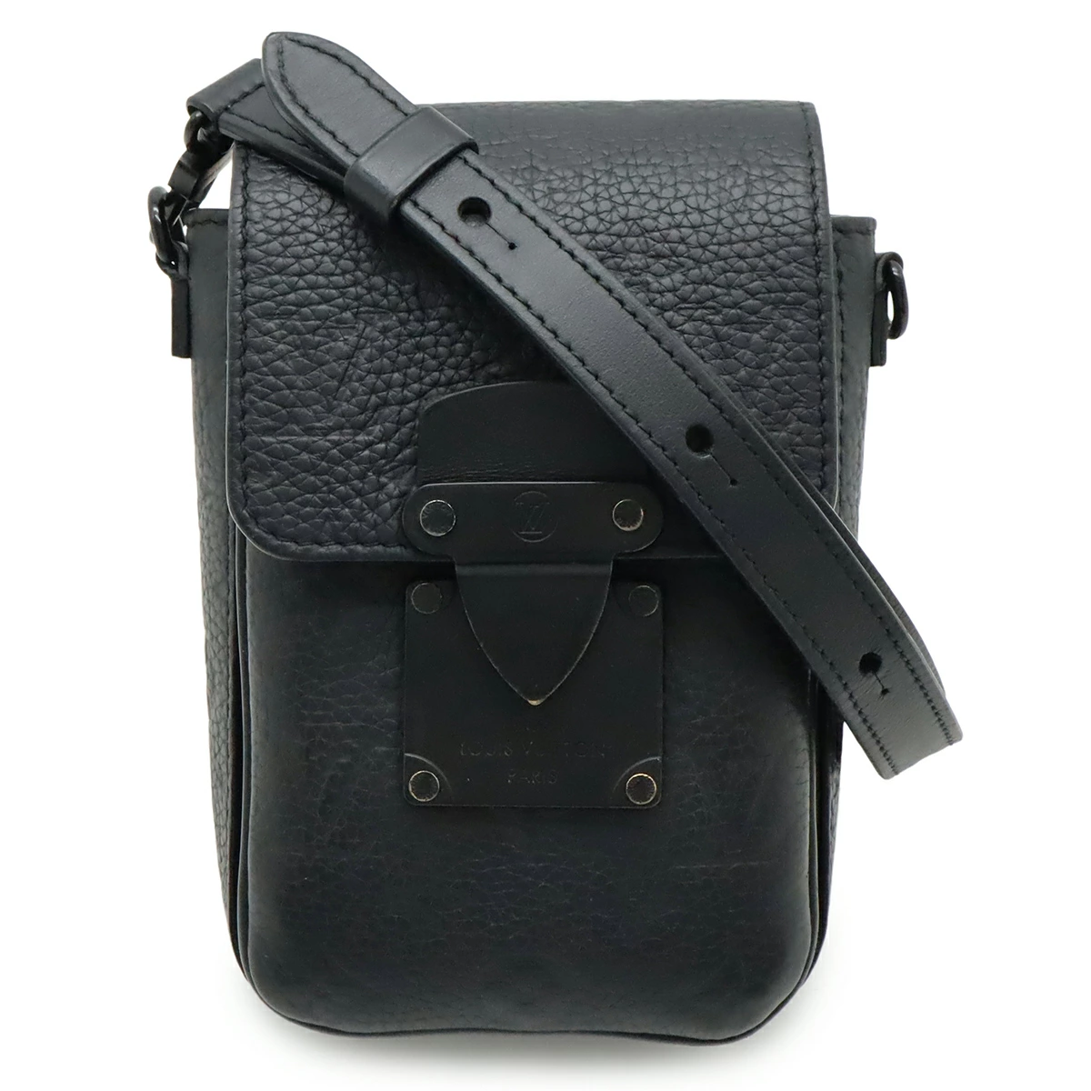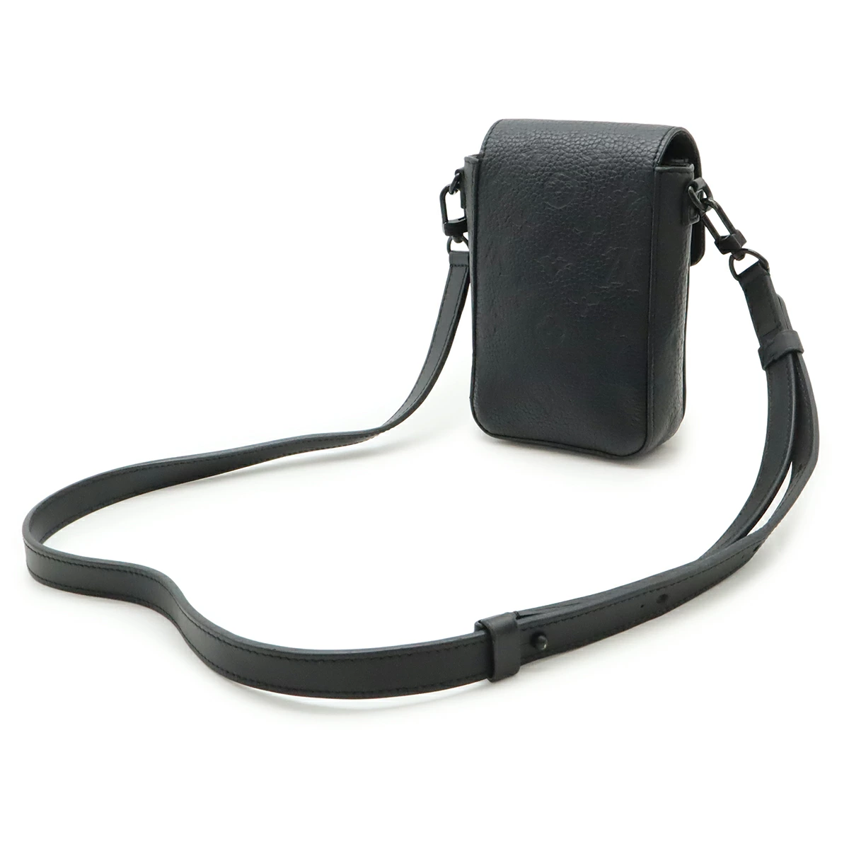 ブラックのトリヨンモノグラムレザーでエレガントに仕立てた、ウェアラブルなウォレット「Sロック ヴェルティカル ウェアラブル ウォレット」。