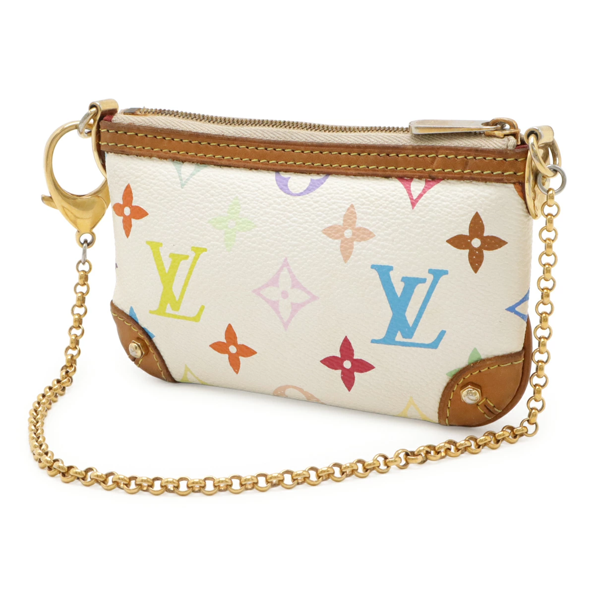 華やかなマルチカラーとチェーンの組み合わせがハイセンスなアクセサリーポーチでございます。