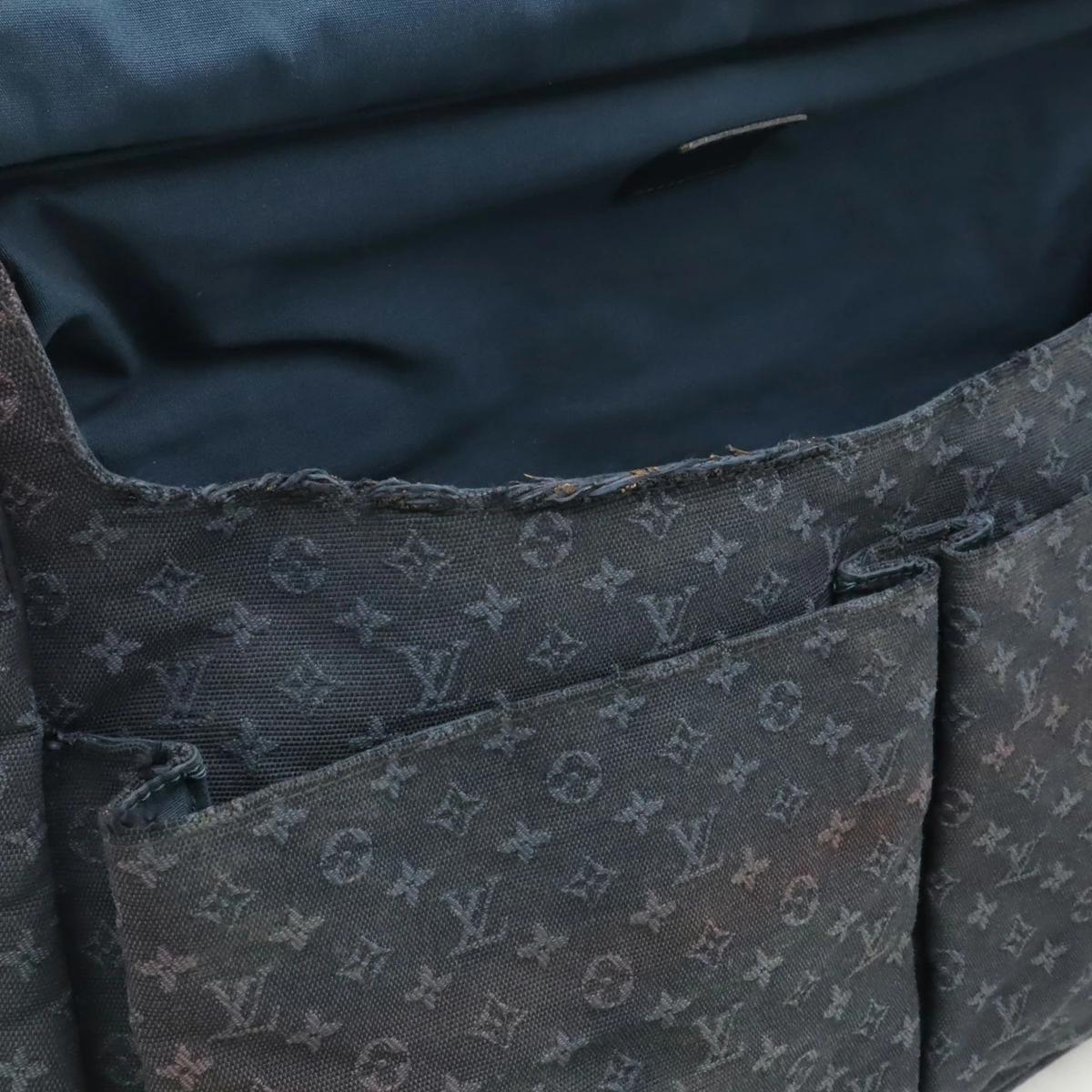 変色、フラップ下、角スレ、色褪せ、間口生地ほつれ、型崩れ、レザー部分シワ