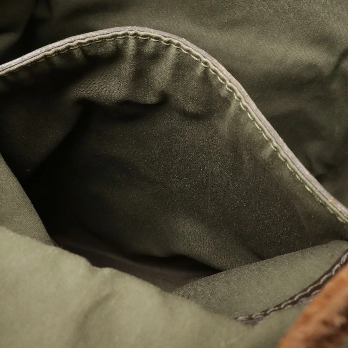 シワ、若干の毛羽立ち、レザー部分シワ、スレ