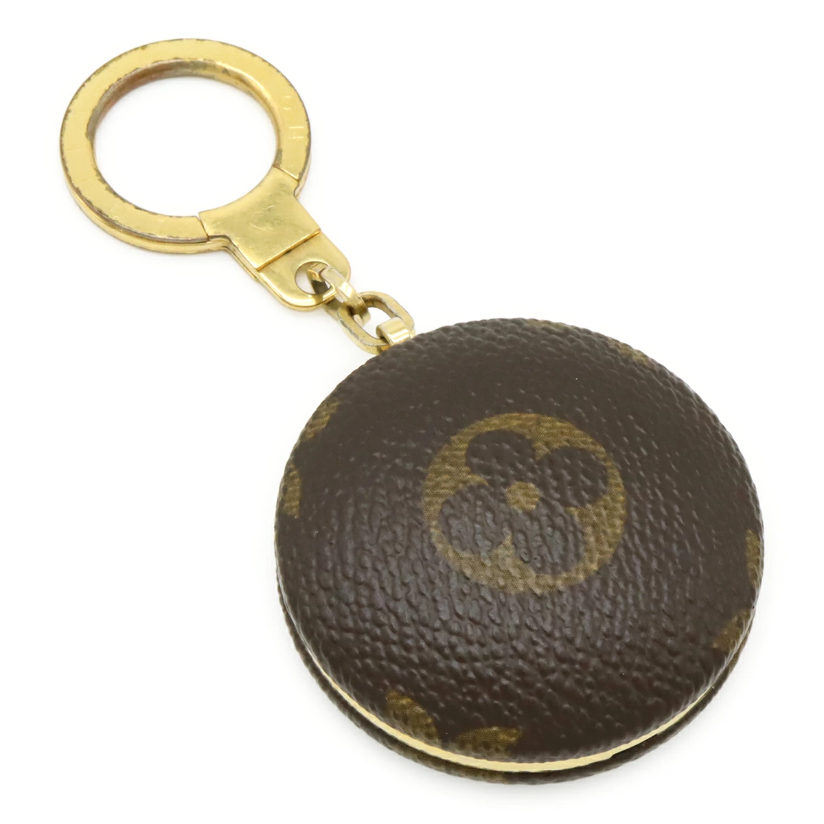 中央のフラワーモチーフ部分を押すと赤いライトが点灯するアストロピル モノグラムキーホルダー。
