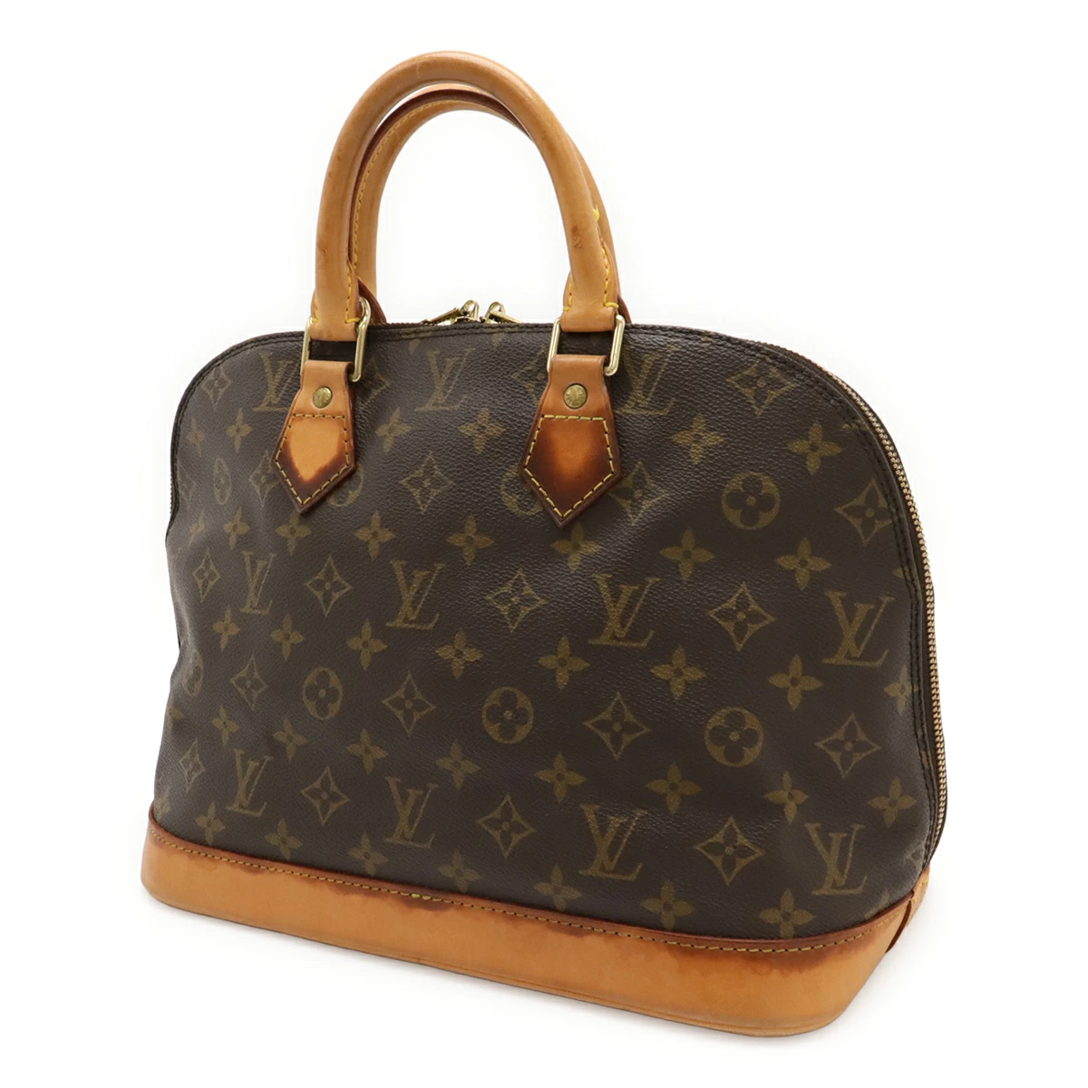 波打ちのようなヨレ、ヌメ革ヤケ、シミ、スレ、底面若干の汚れ