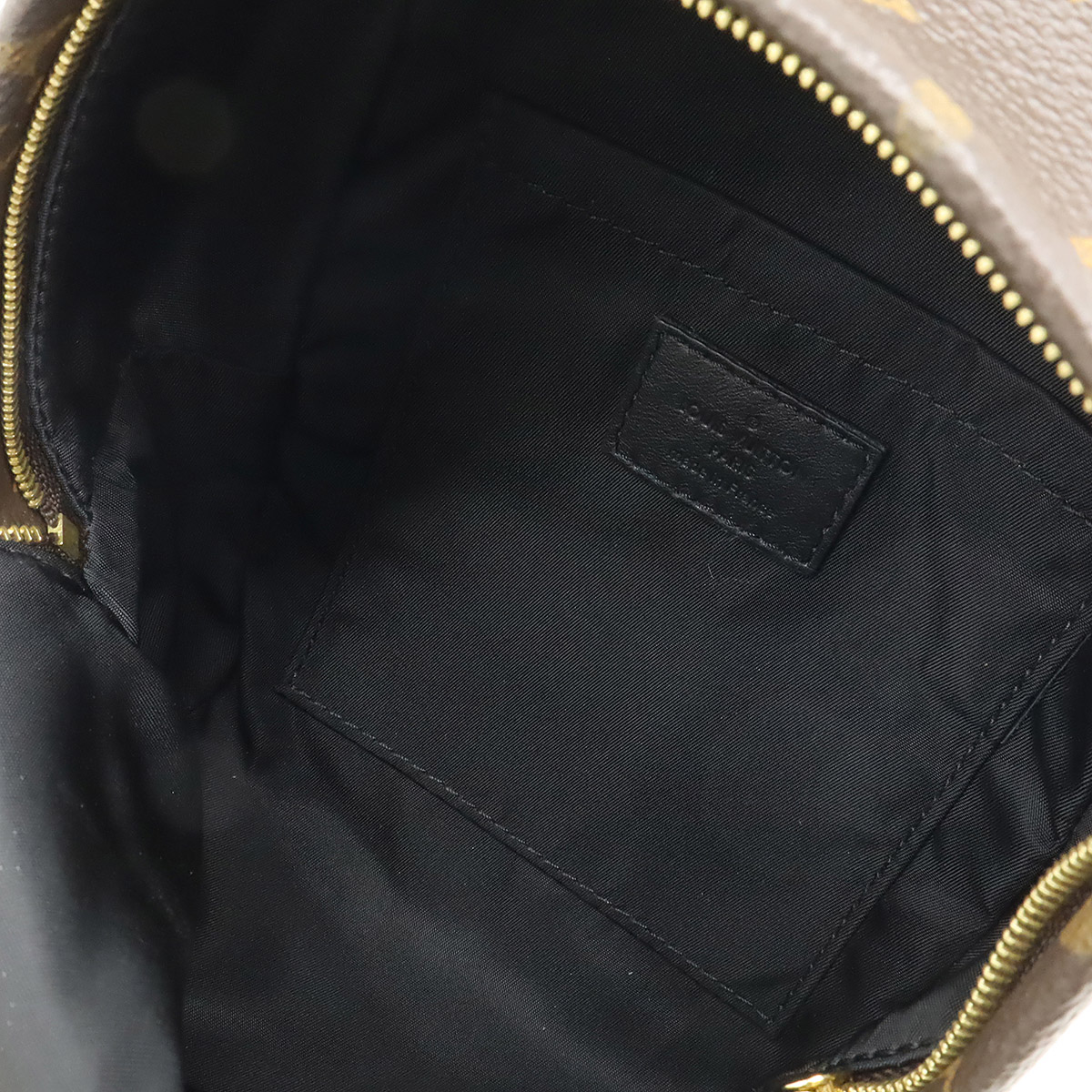 モノグラムにレザーのアクセントを効かせたオシャレなバックパック。