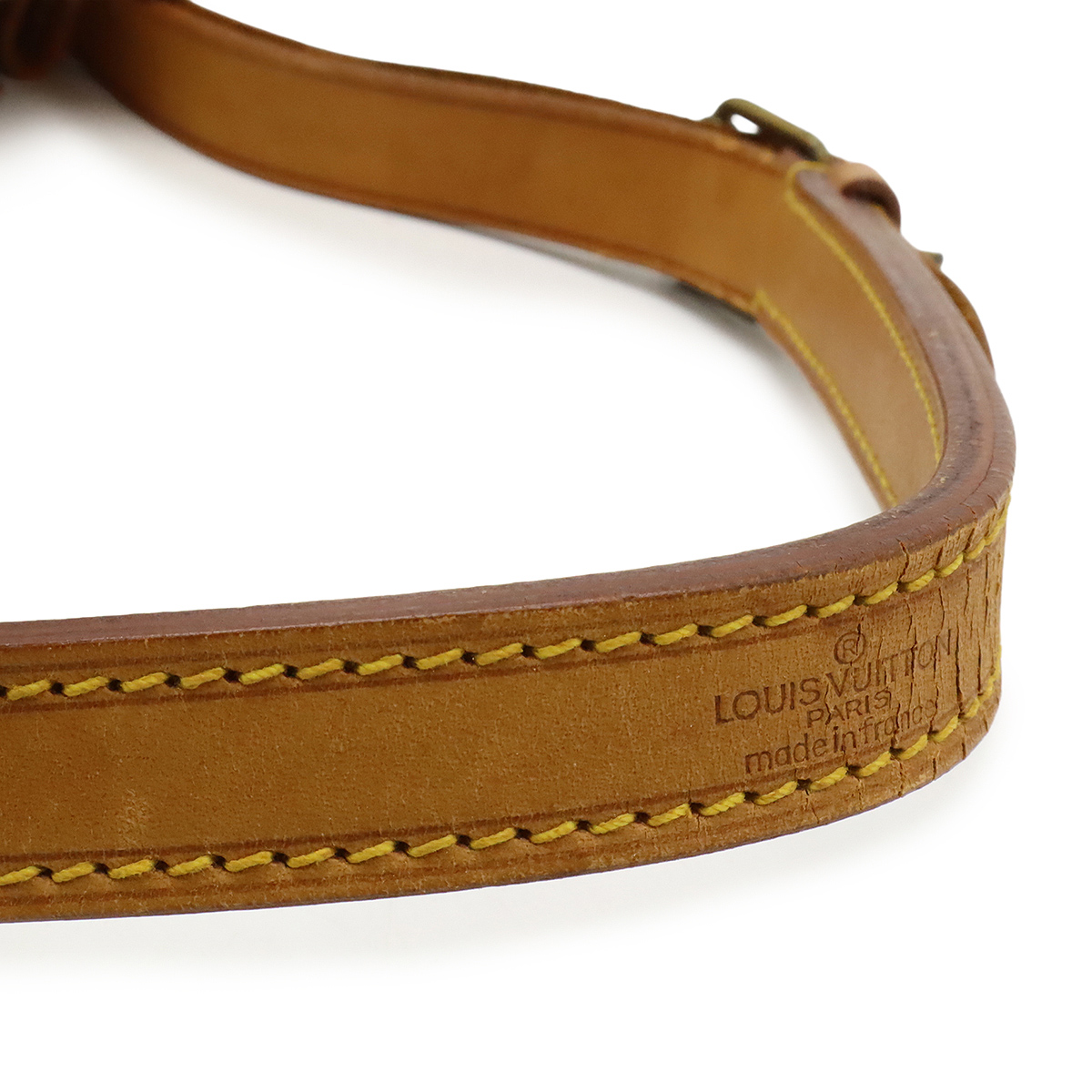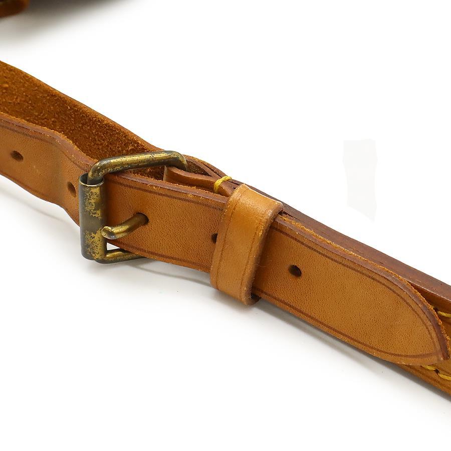 【コンディション】[外側]ヌメ革ヤケ、スレ、シミ、ヒビ、間口パイピング若干の破れ、紐劣化[内側]若干のスレ、薄汚れ、ペン跡[ショルダー]ヤケ、シミ、スレ、金具跡、わずかなヒビ[金具]くすみ、メッキ剥げ[特記事項]製造番号 A2874