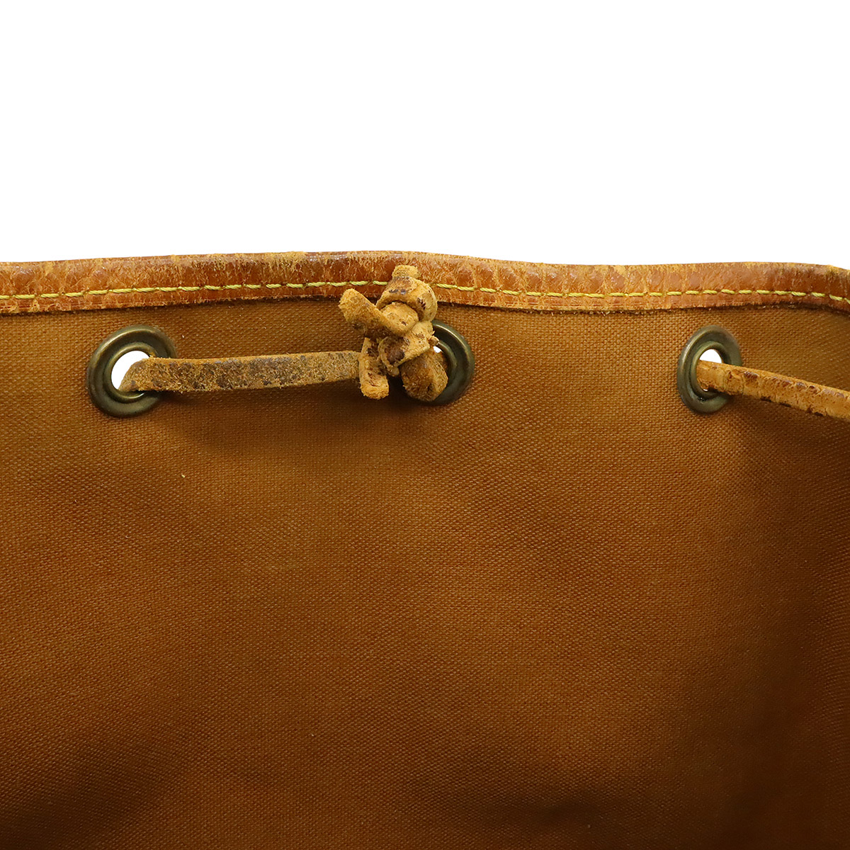 【コンディション】[外側]ヌメ革ヤケ、シミ、スレ、黒ずみ、ヒビ、間口破れ、紐劣化、切れ[内側]シミ、汚れ[ショルダー]ヤケ、黒ずみ、シミ、スレ、若干の金具跡[金具]若干の緑青、スレ、くすみ[特記事項]製造番号 AR0940