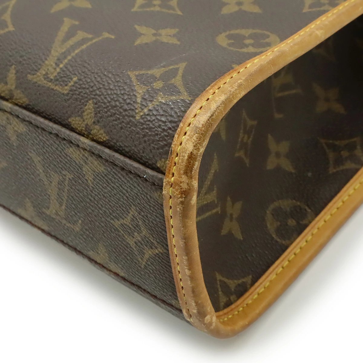 スレ、正面へこみ、ヌメ革ヤケ、汚れ、フチヒビ、フロントベルトクセ