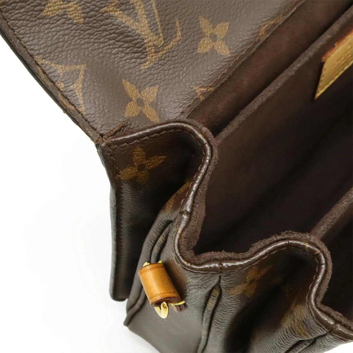 アイコニックなモノグラムキャンバスにバックルが印象的。