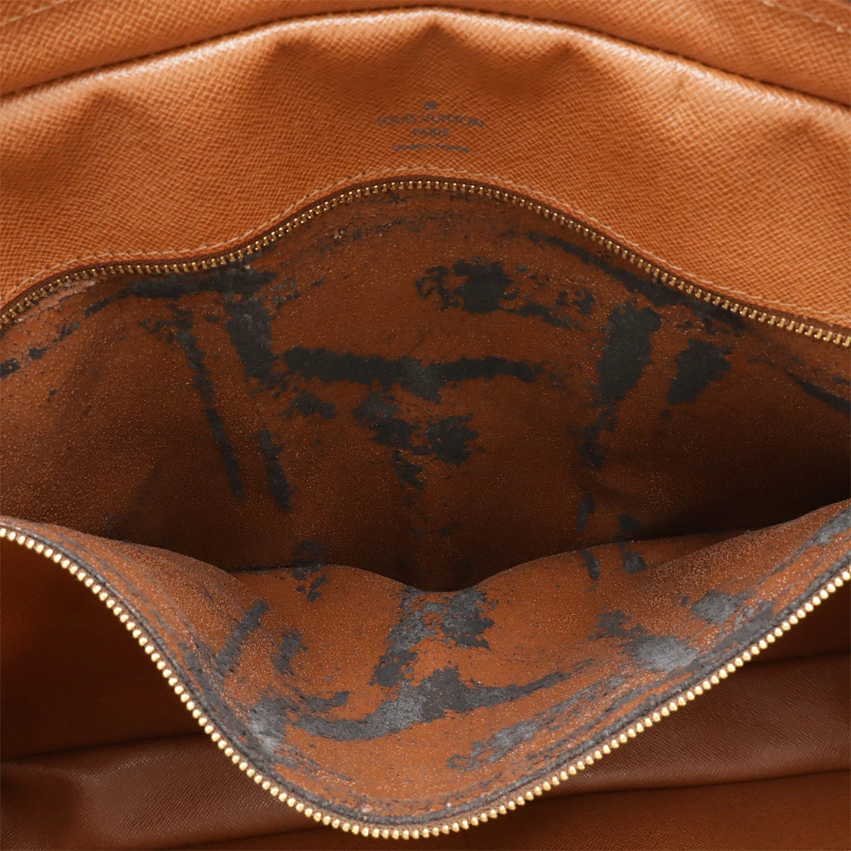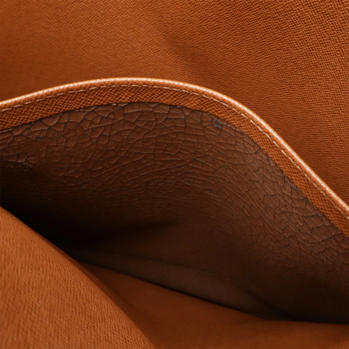 ヌメ革シワ、スレ、若干ヤケ、間口若干波打ちのようなヨレ