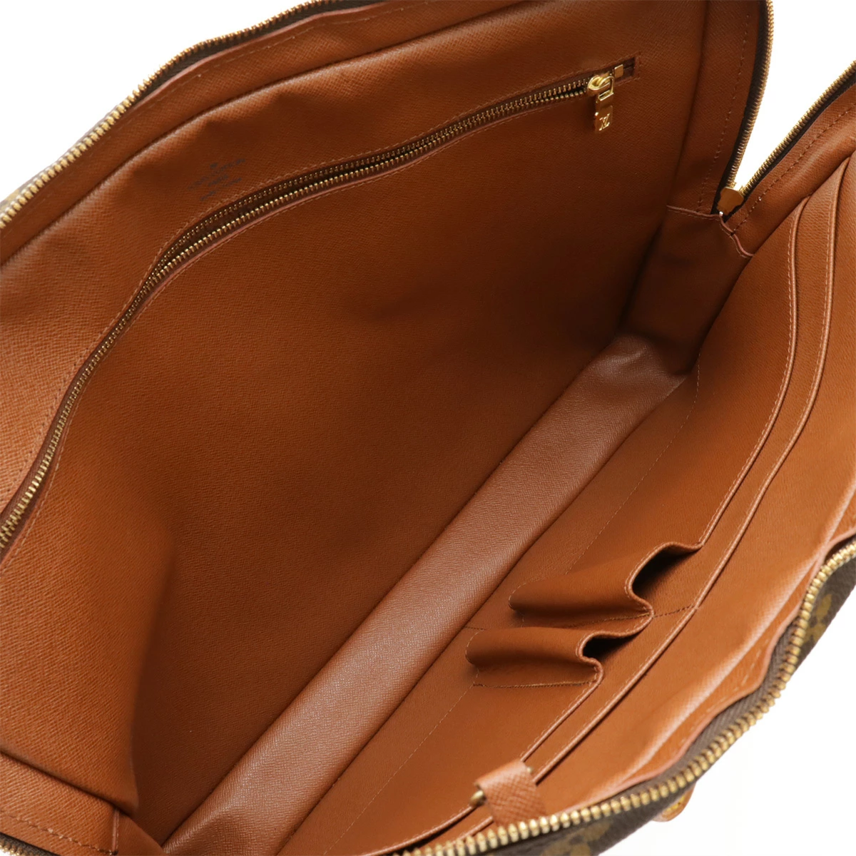 開口部が大きく開くファスナー式で、書類が出し入れしやすいデザインでビジネスシーンなどで大活躍の逸品でございます。