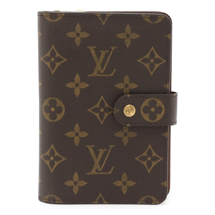 【商品説明】[サイズ]W10.5cm H15.5cm[材質]モノグラム・キャンバス(PVCコーティングキャンバス)[カラー]ブラウン[仕様]札入れ1、小銭入れ(仕切り有)1、カードポケット5、その他ポケット2[付属品]証明書ケース(内側わずかな汚れ)