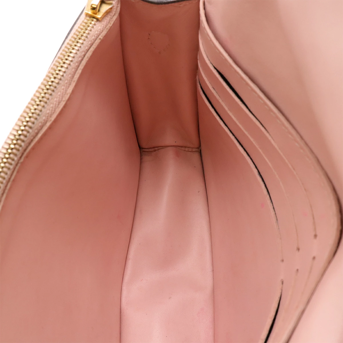モノグラムフラワーの飾りをワンポイントにあしらった逸品。