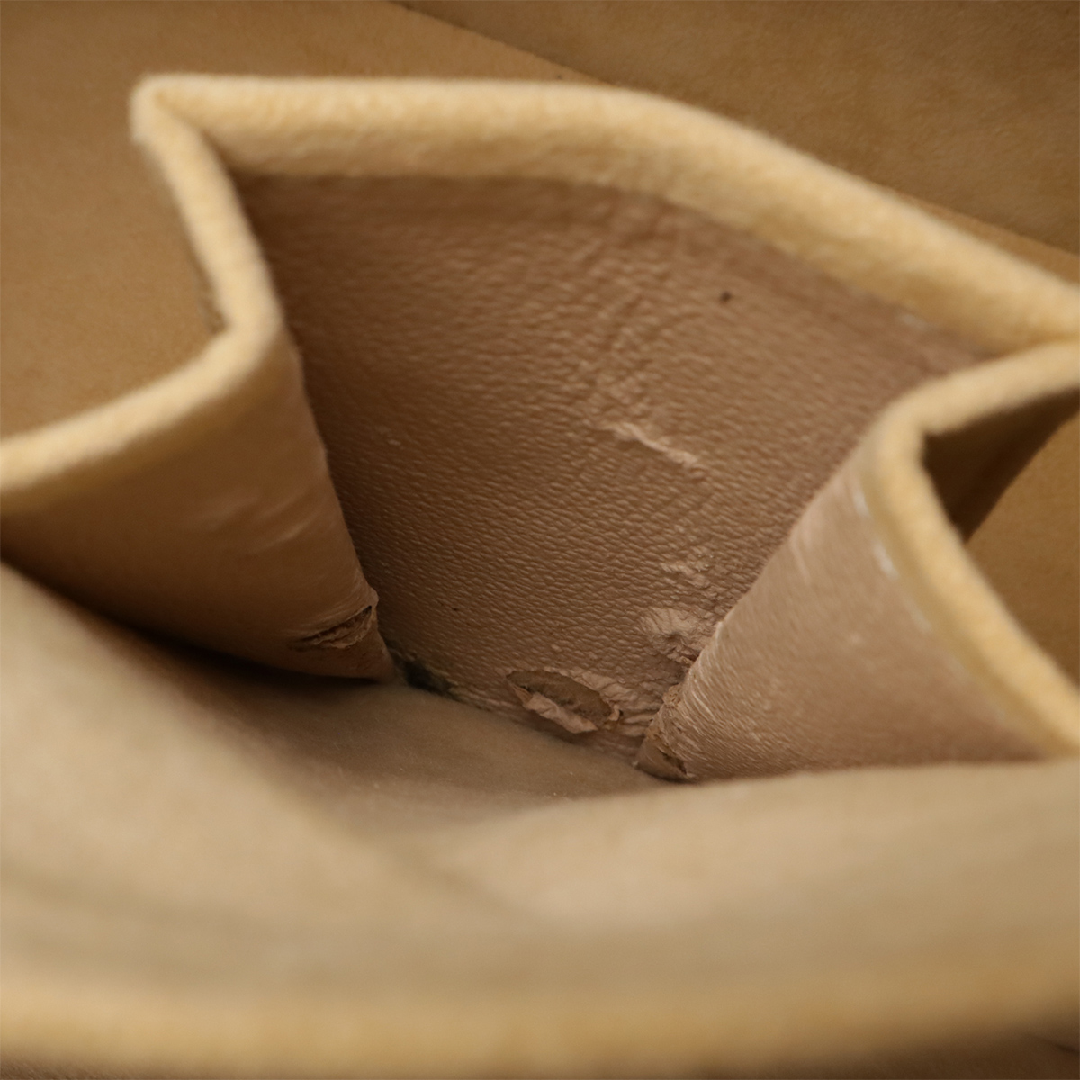 [内側]薄シミ、薄汚れ、黄ばみ、スレ、保管臭、ポケット内生地浮き、ベタつき