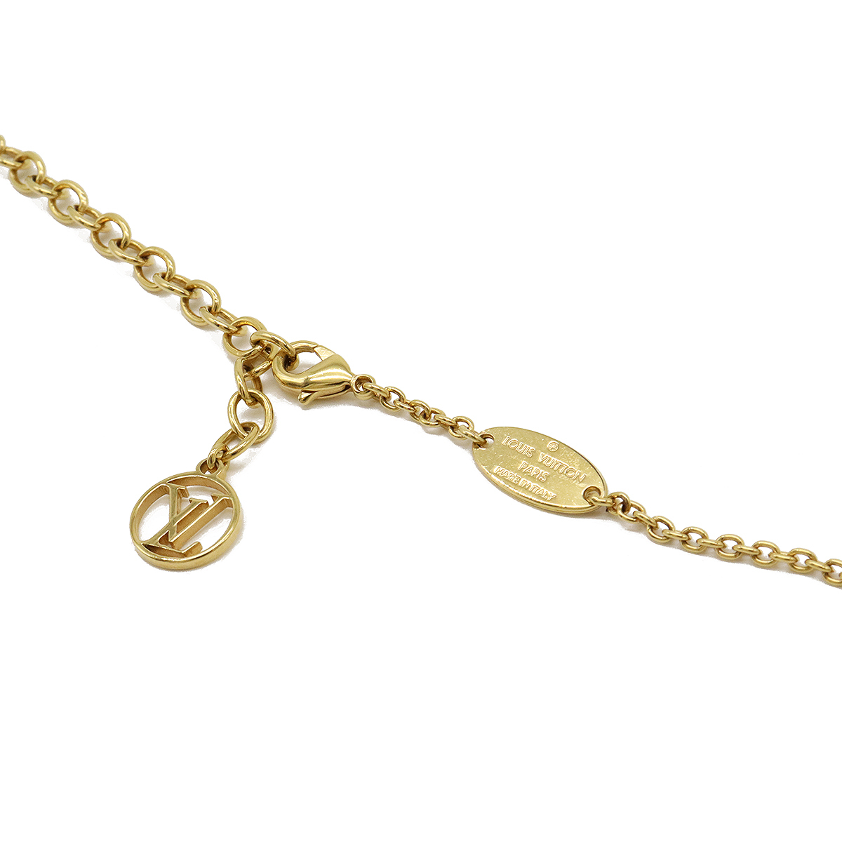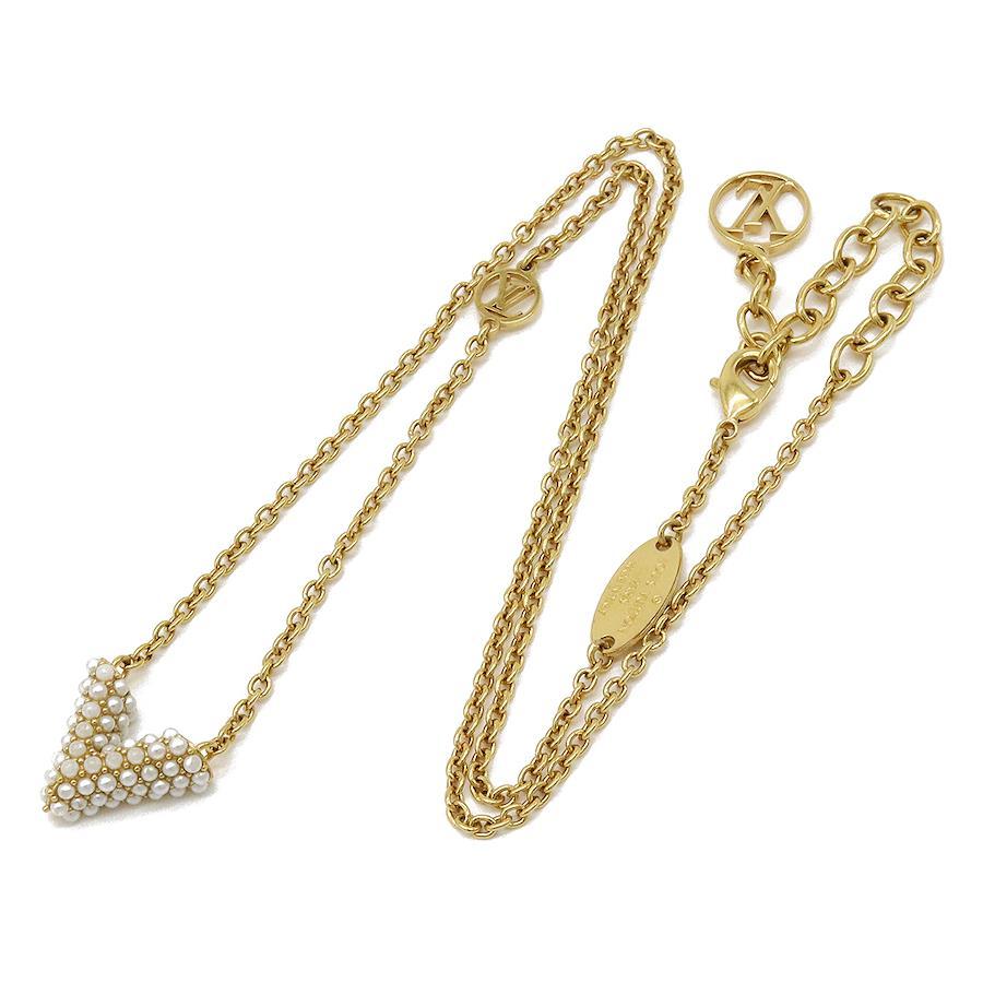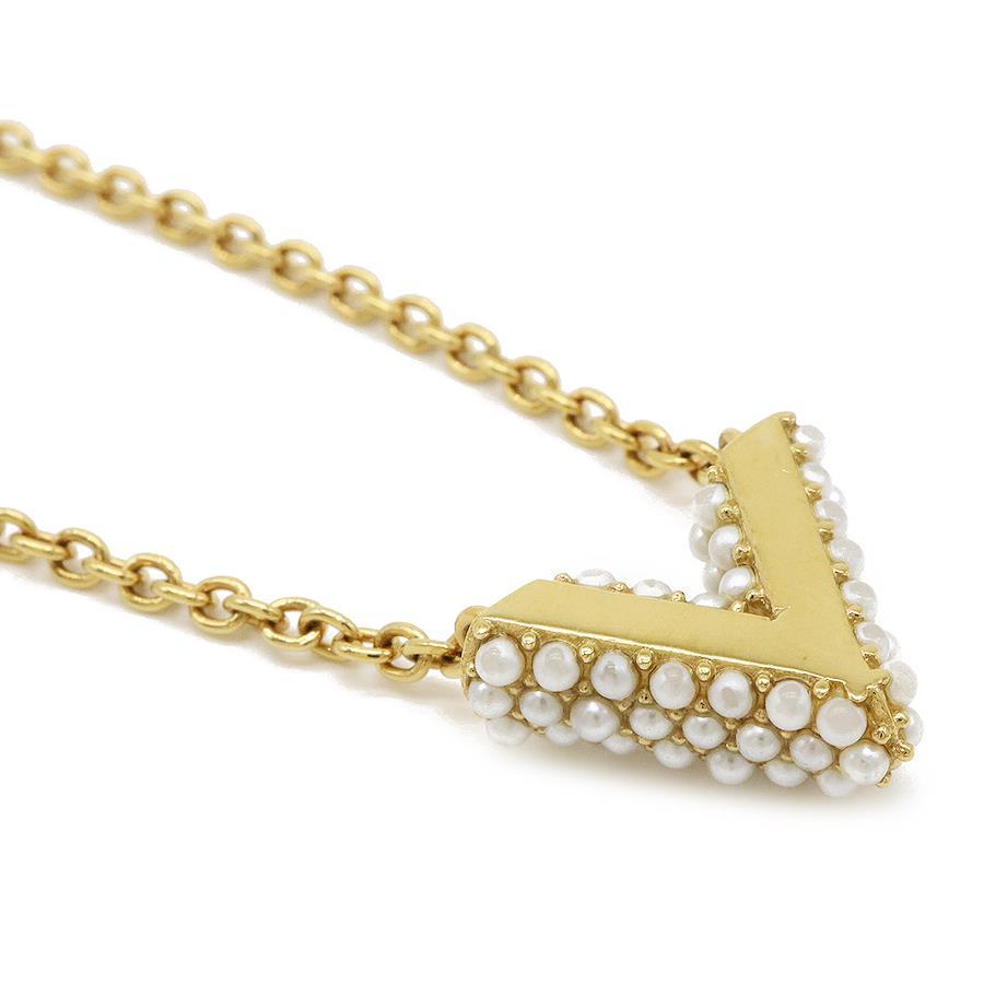 LOUIS VUITTON Collier Essential V Pearl Necklace Pendant GP Gold Fake Pearl M68358